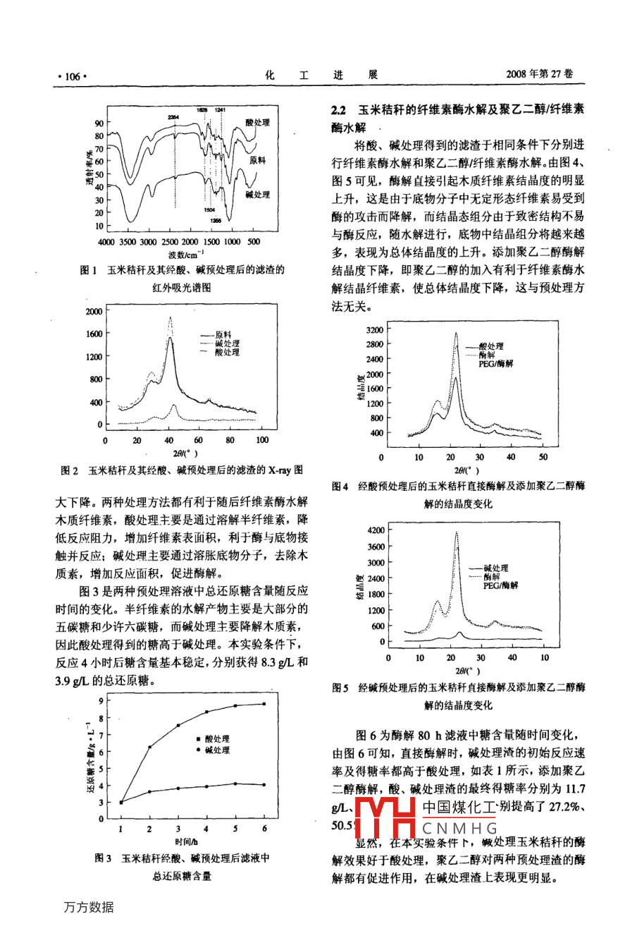玉米秸稈制乙醇過程中的酸、堿預(yù)處理及聚乙二醇/酶解 玉米秸稈制乙醇過程中的酸、堿預(yù)處理及聚乙二醇/酶解