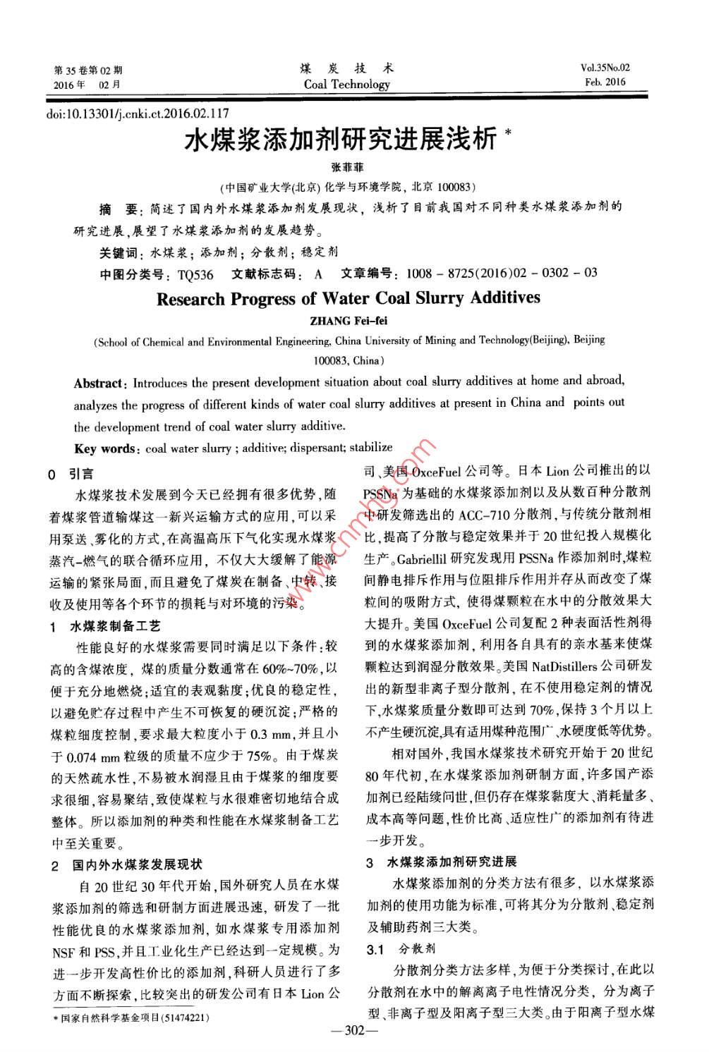 水煤漿添加劑研究進(jìn)展淺析
