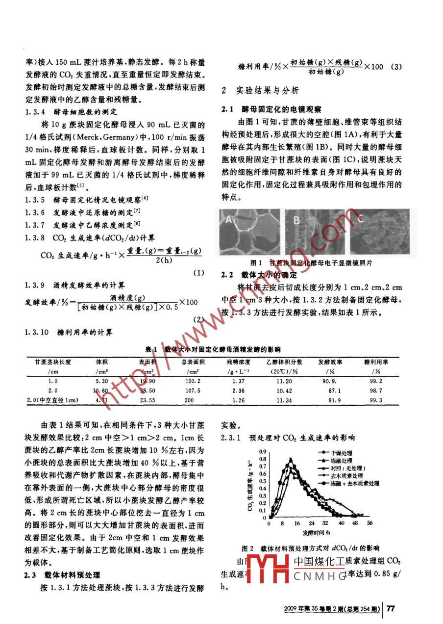 甘蔗塊固定化酵母的制備及其在蔗汁燃料乙醇生產(chǎn)中的應用