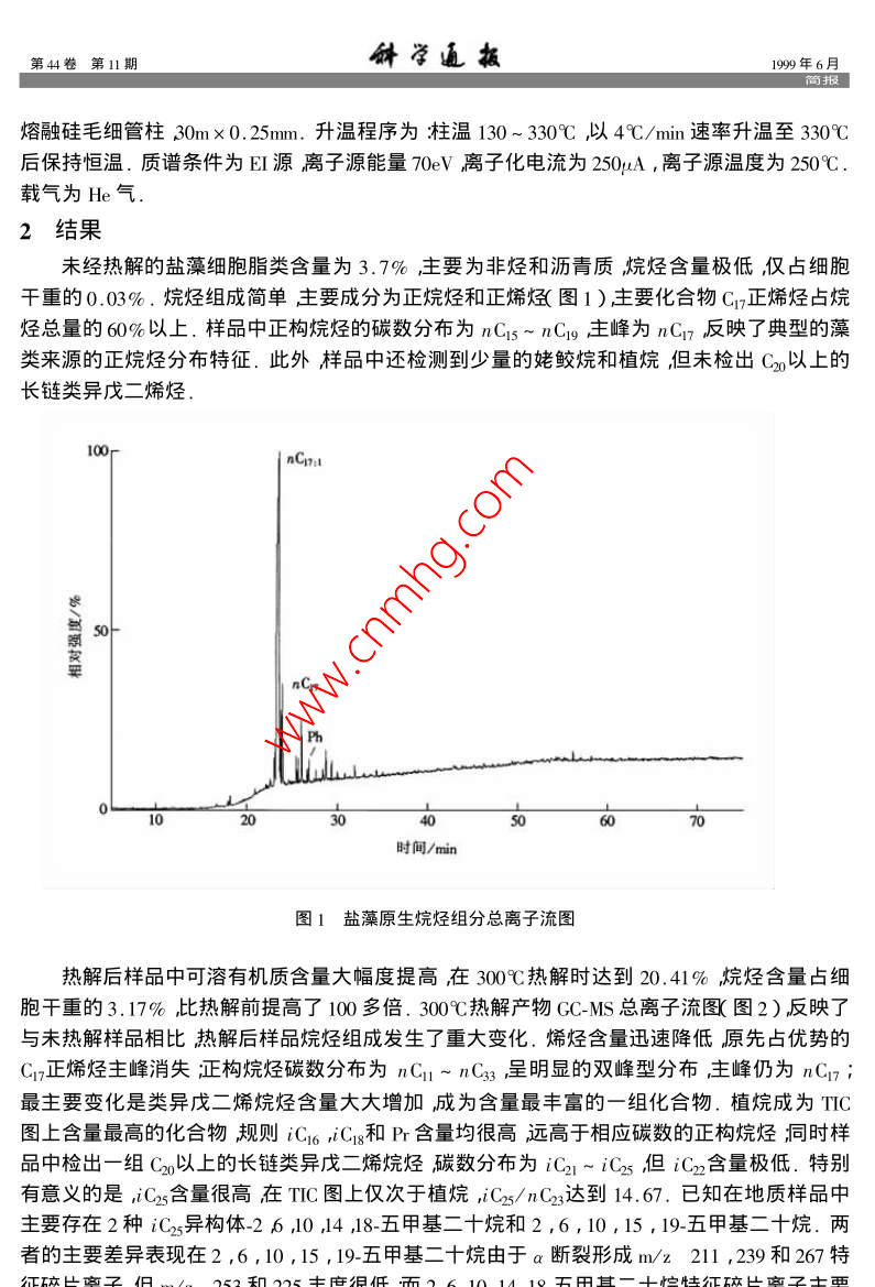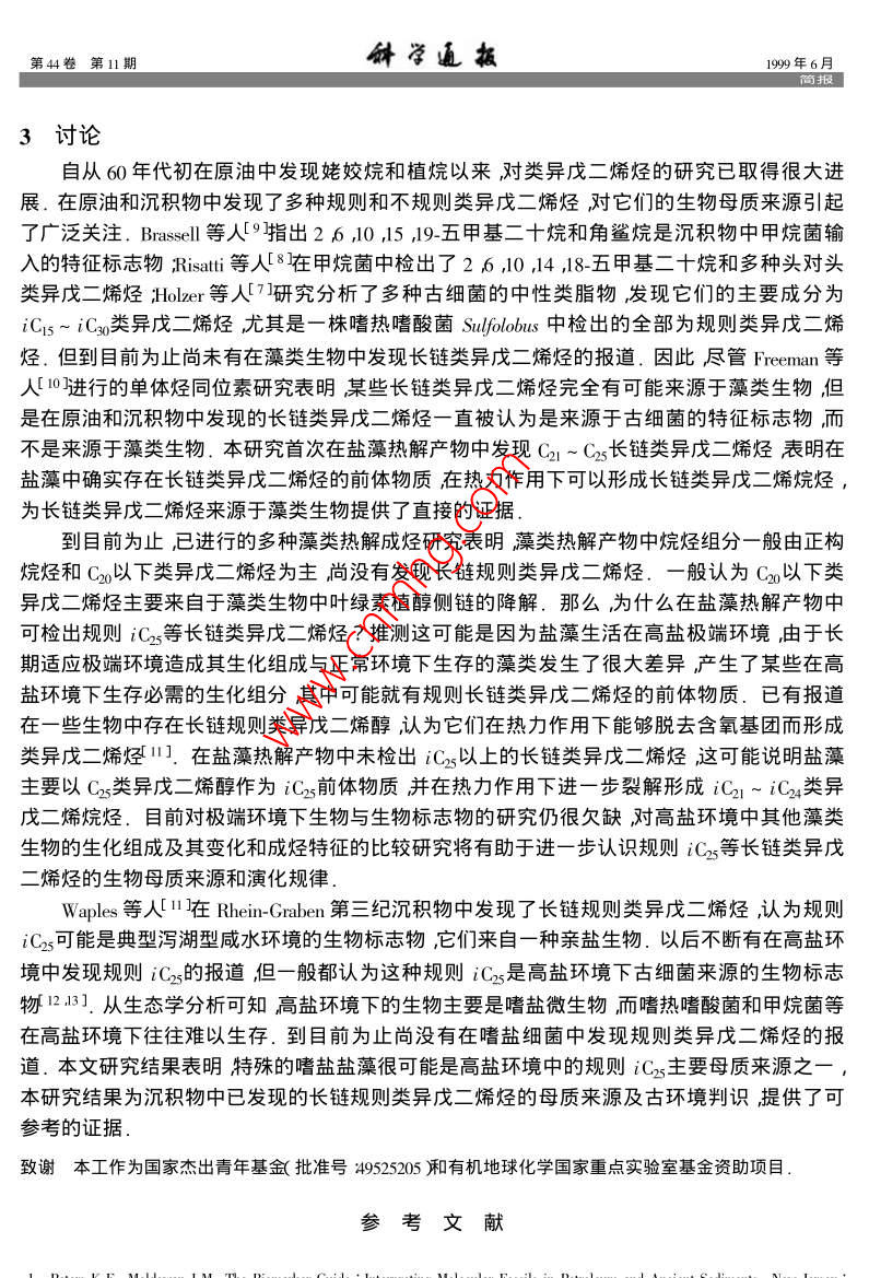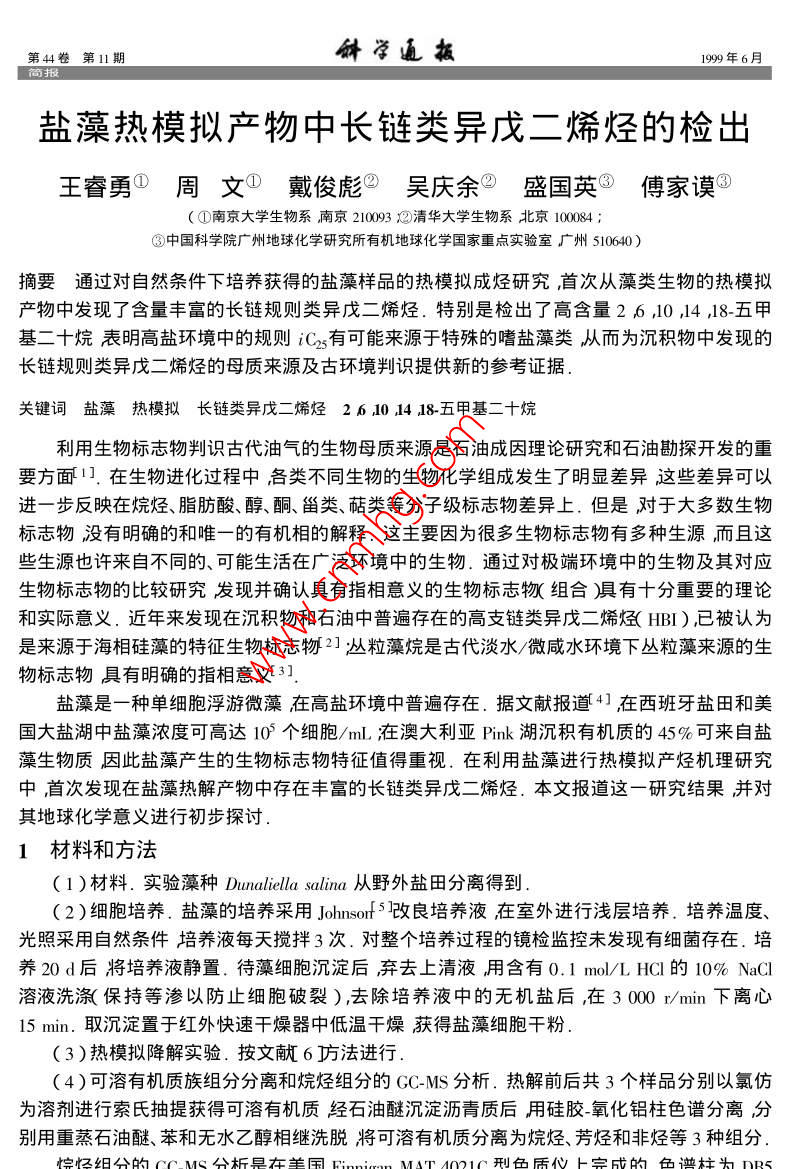 鹽藻熱模擬產(chǎn)物中長(zhǎng)鏈類(lèi)異戊二烯烴的檢出