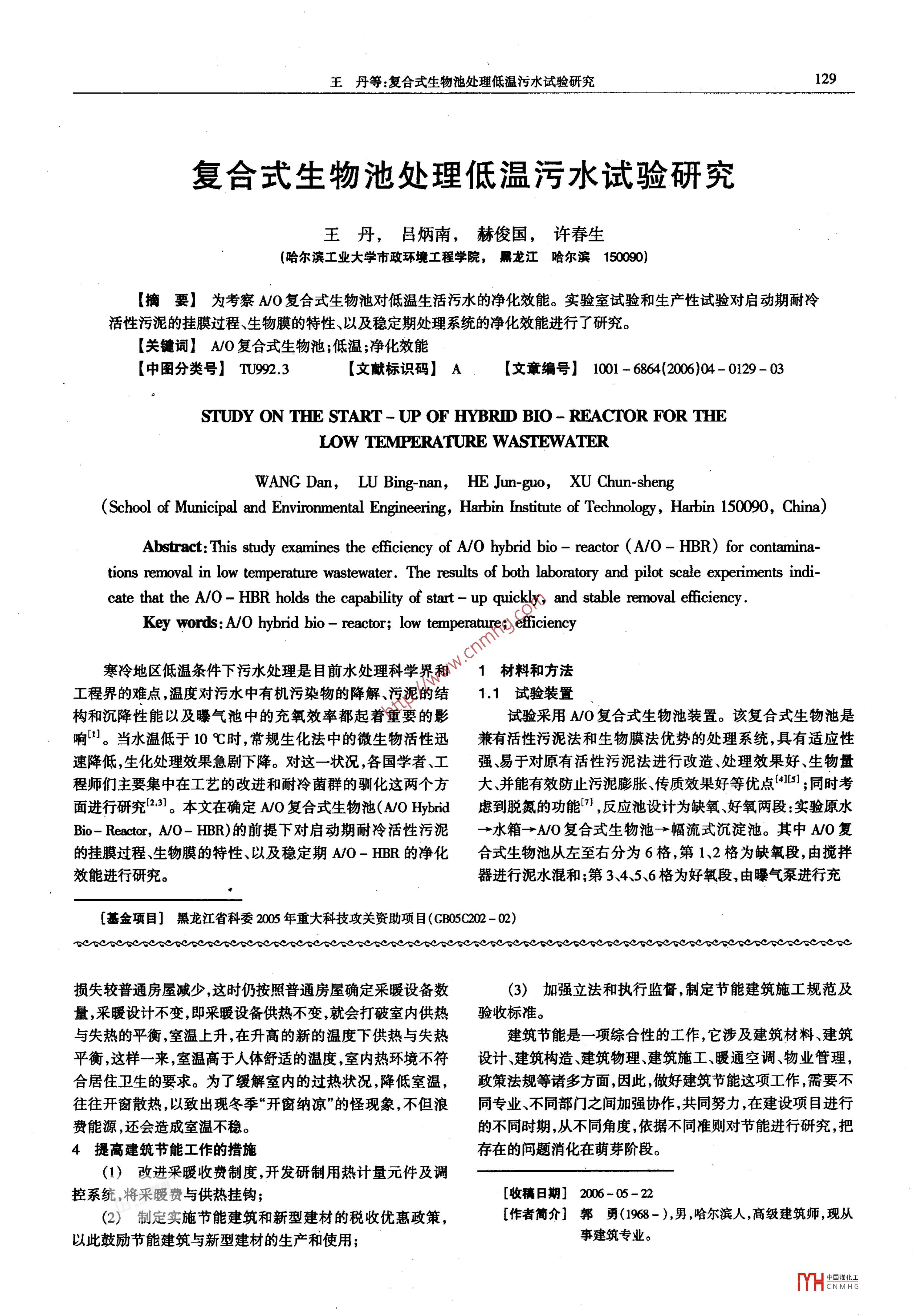 復(fù)合式生物池處理低溫污水試驗(yàn)研究