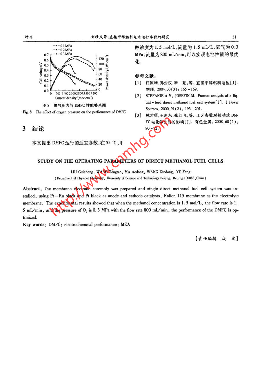 直接甲醇燃料電池運(yùn)行參數(shù)的研究