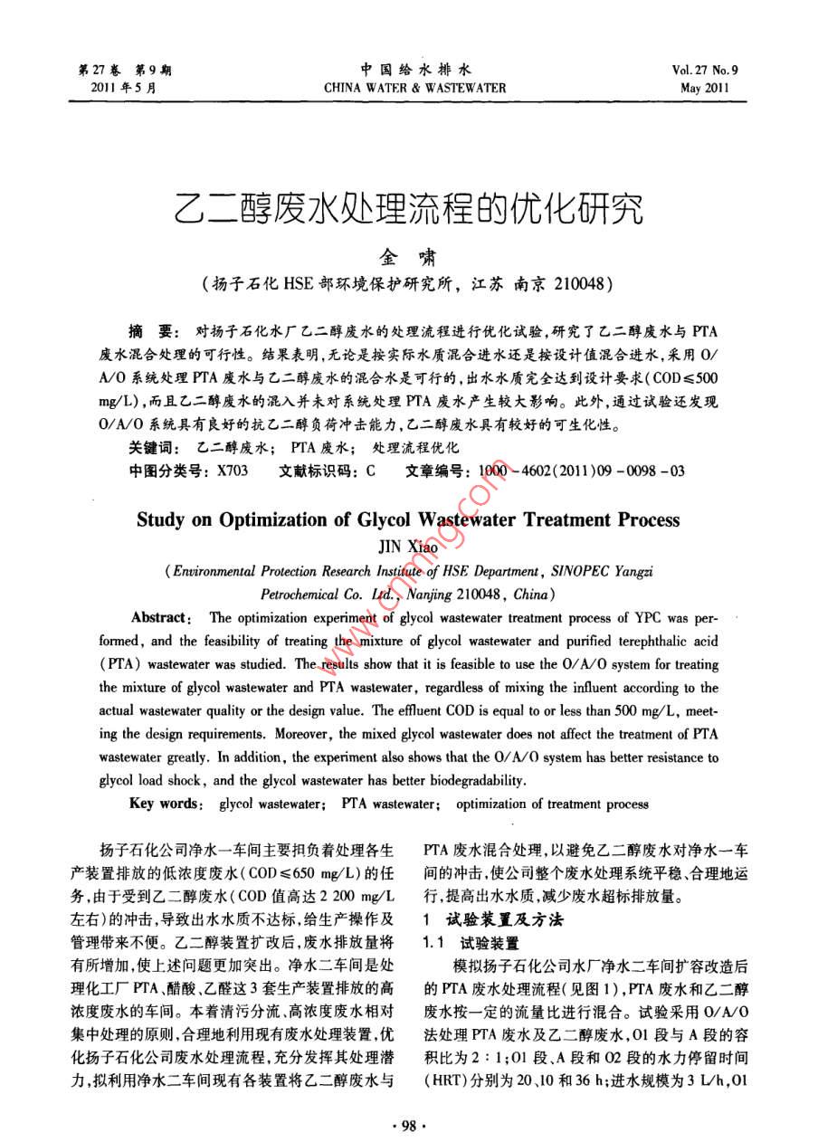 乙二醇廢水處理流程的優(yōu)化研究 乙二醇廢水處理流程的優(yōu)化研究