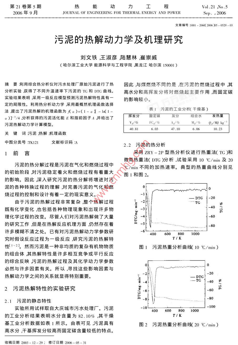 污泥的熱解動(dòng)力學(xué)及機(jī)理研究