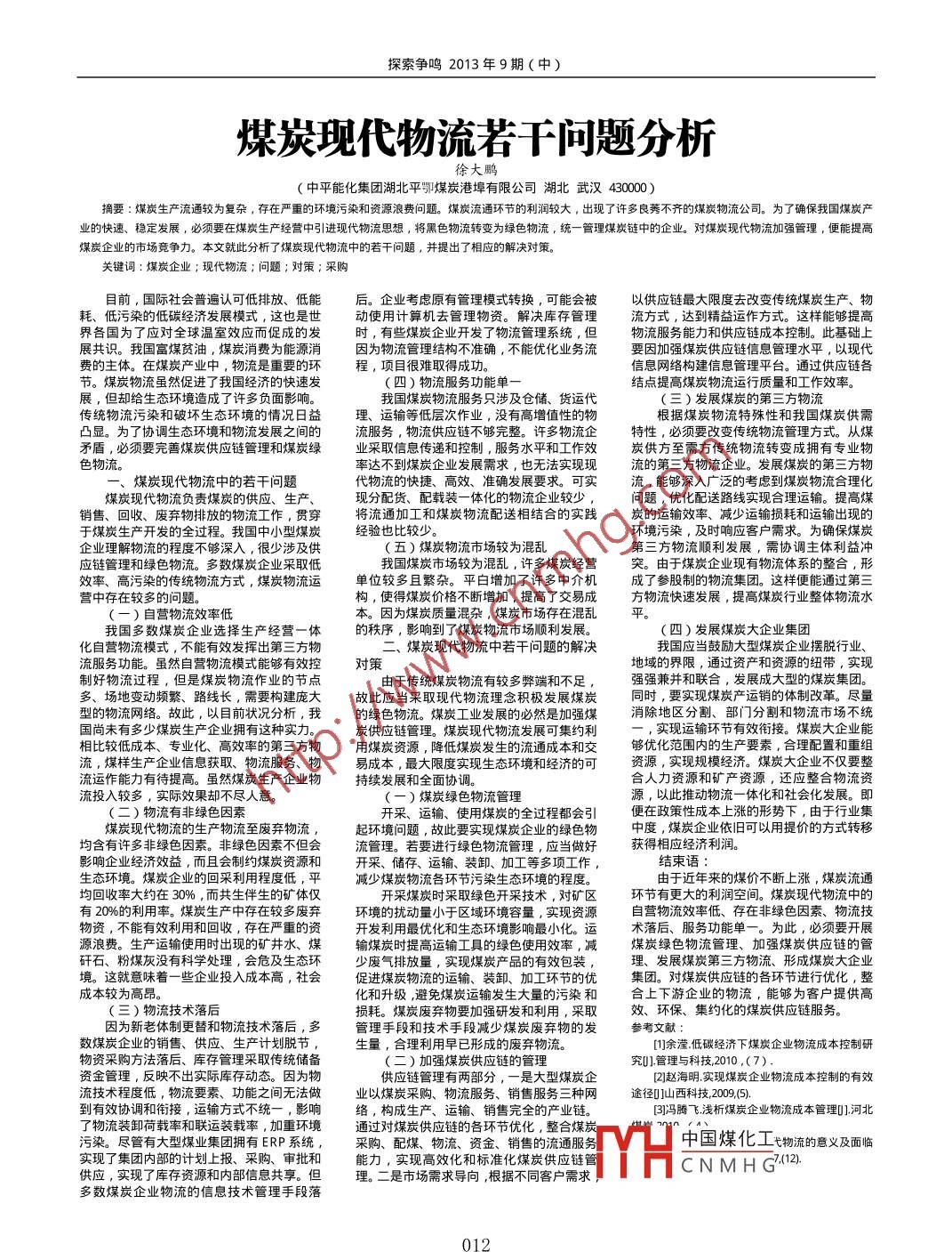 - 作者單位:中平能化集團湖北平卾煤炭港埠有限公司