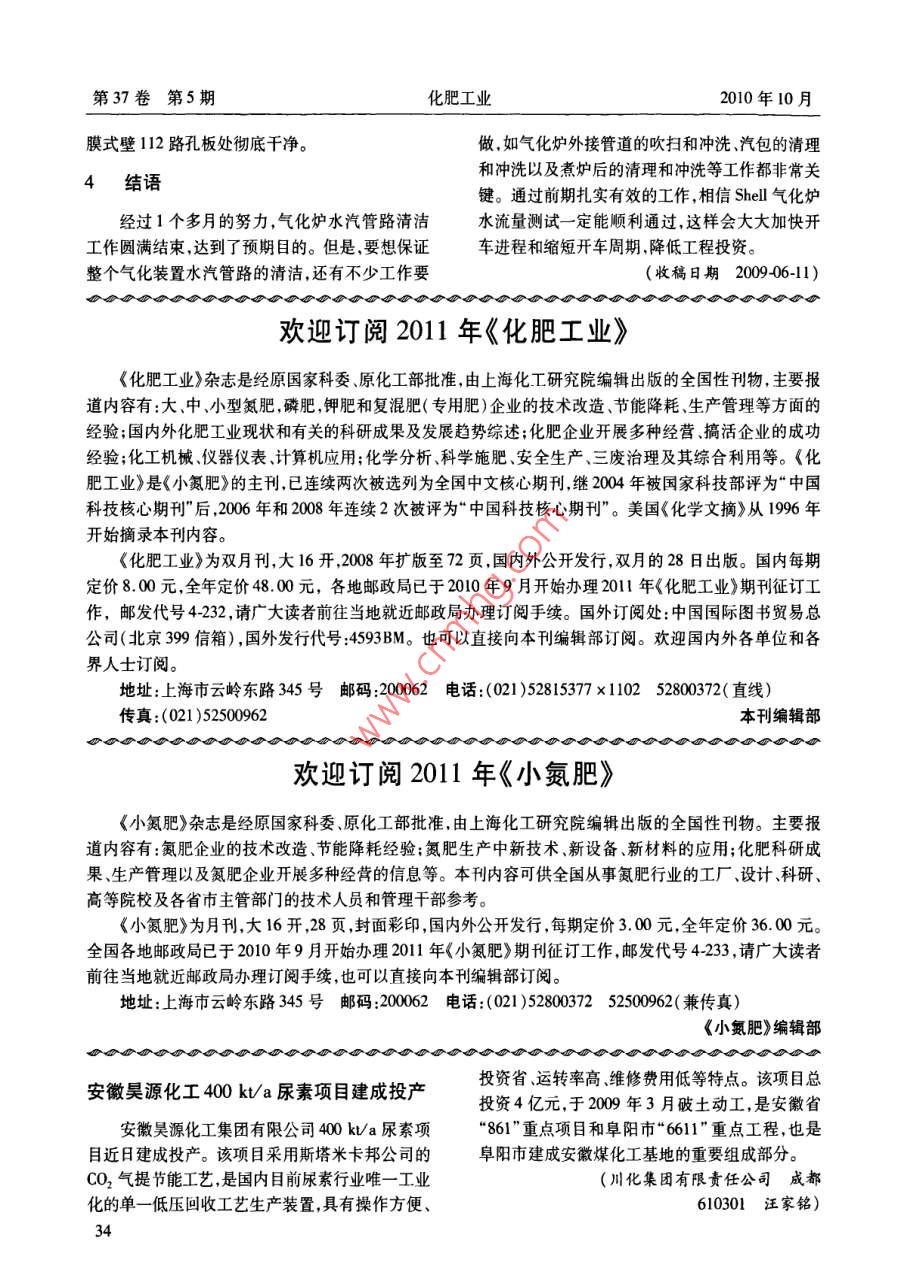- 期刊名字:化肥工業(yè)