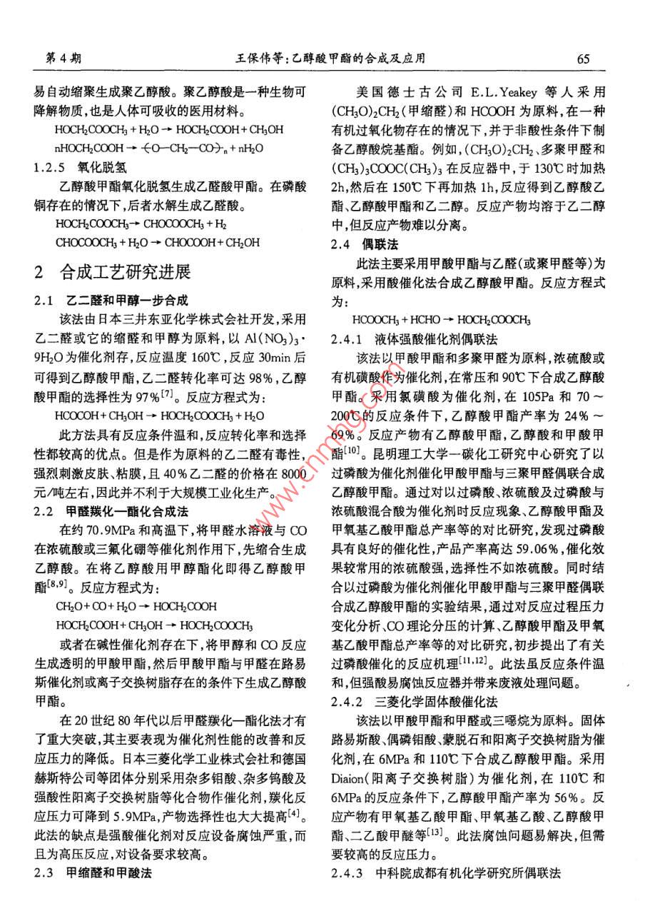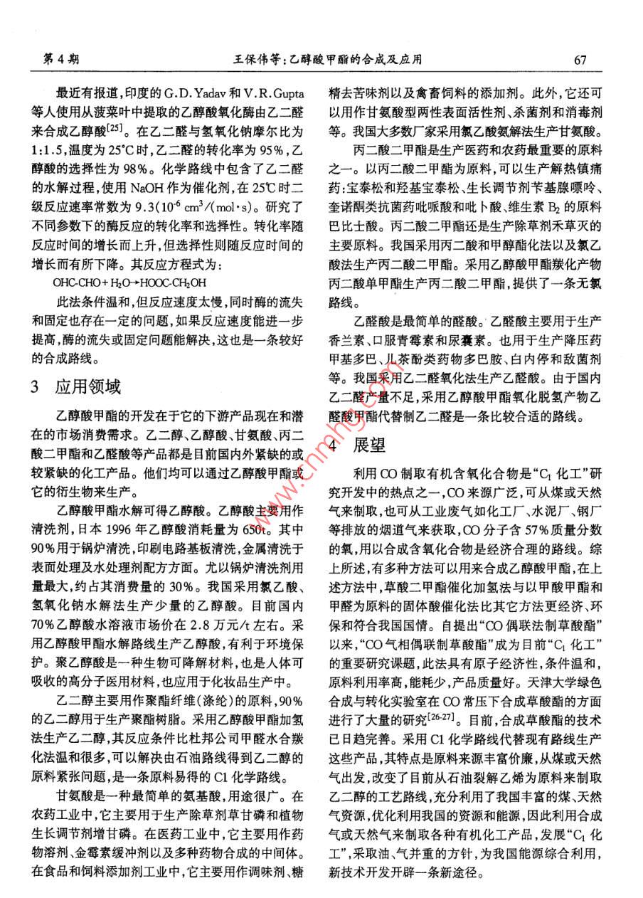 乙醇酸甲酯的合成及應(yīng)用