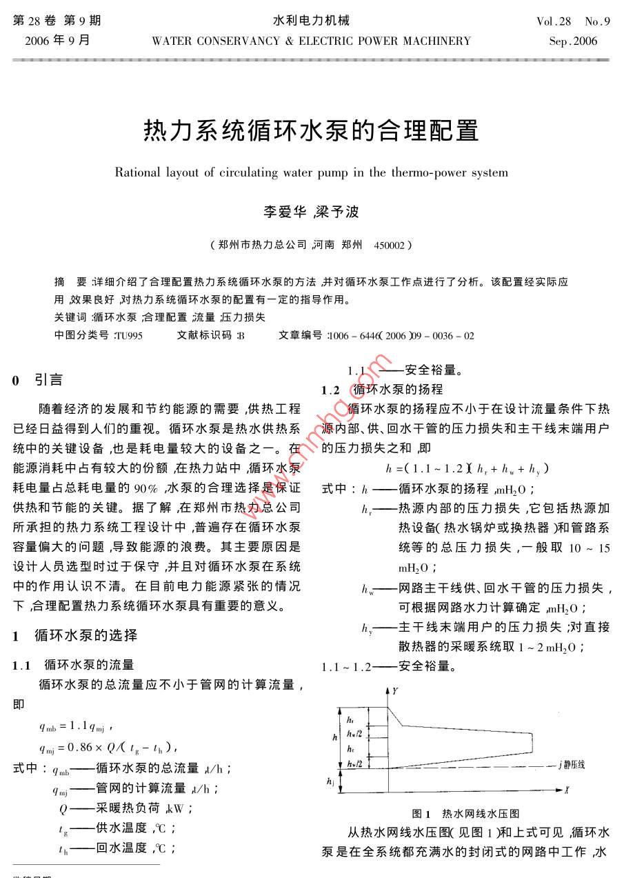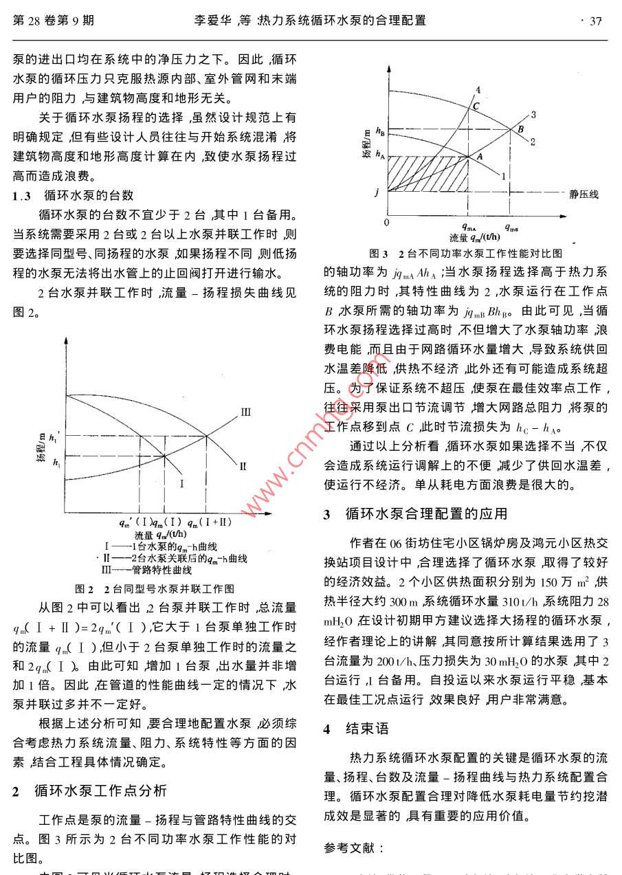 熱力系統(tǒng)循環(huán)水泵的合理配置
