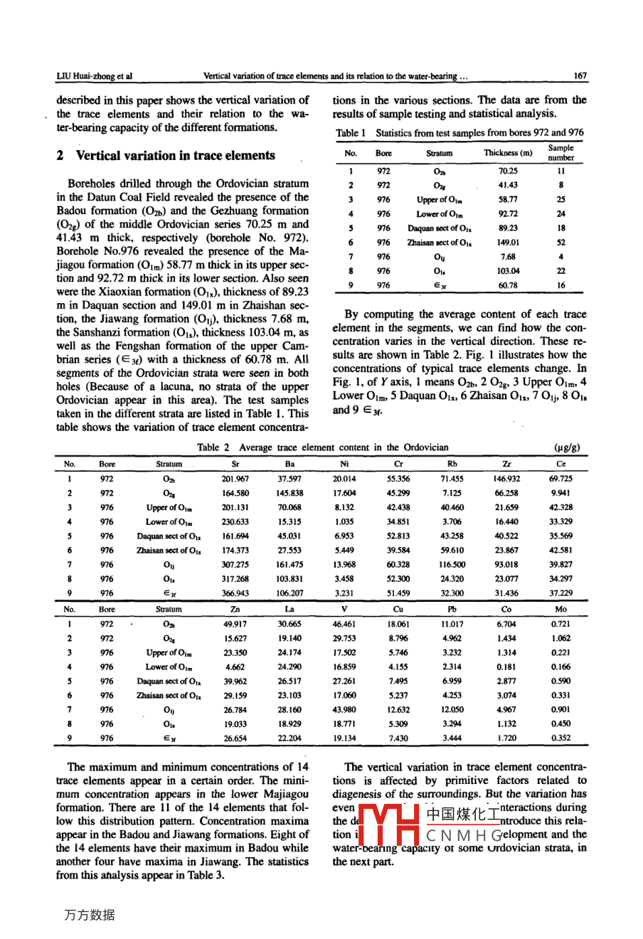 Vertical variation of trace elements and its relation to the water-bearing capacity of Ordovician st