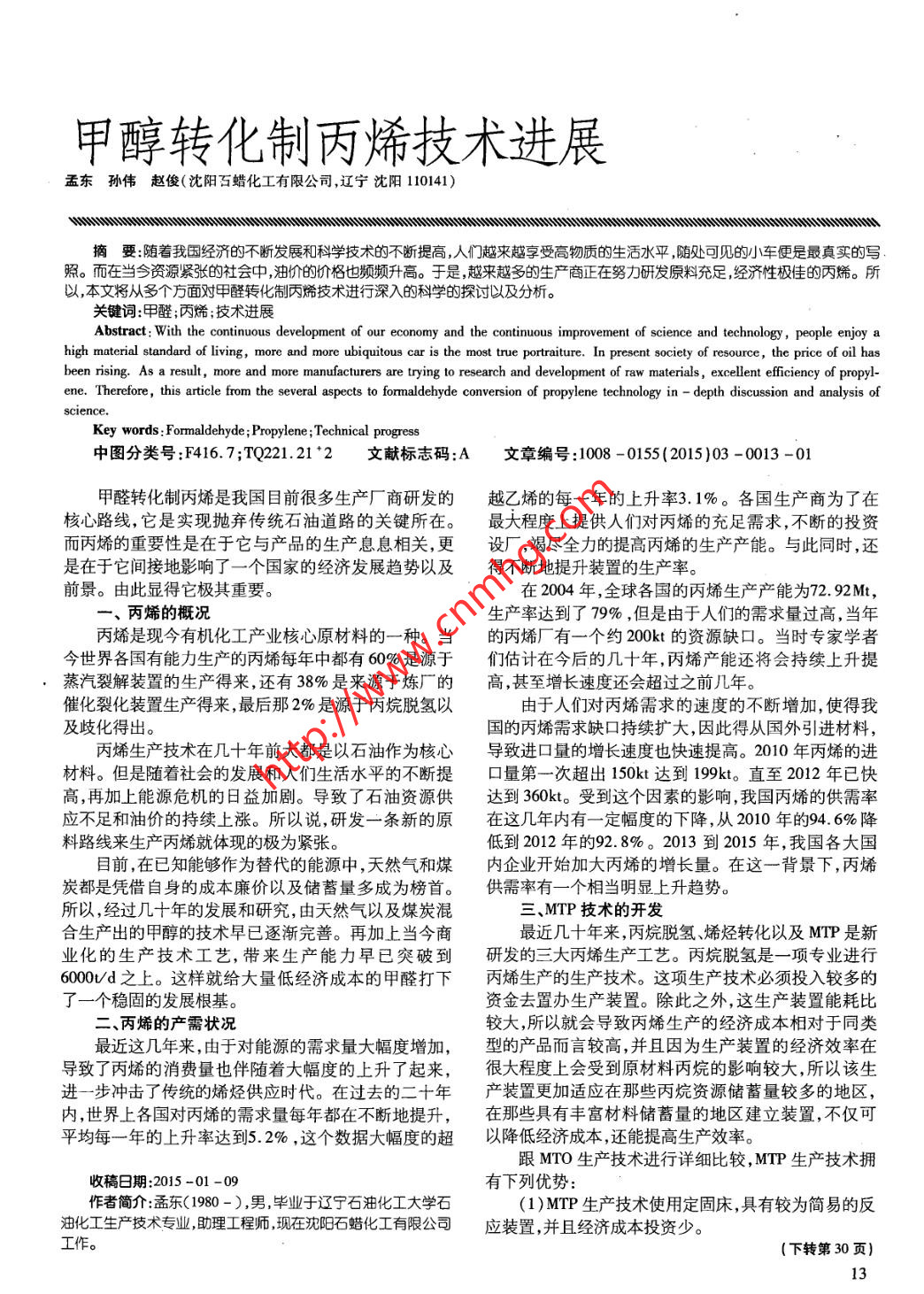 甲醇轉(zhuǎn)化制丙烯技術(shù)進(jìn)展