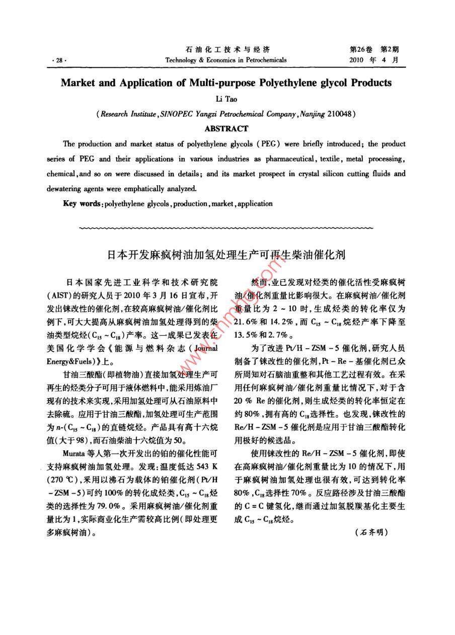 - 期刊名字:石油化工技術與經(jīng)濟