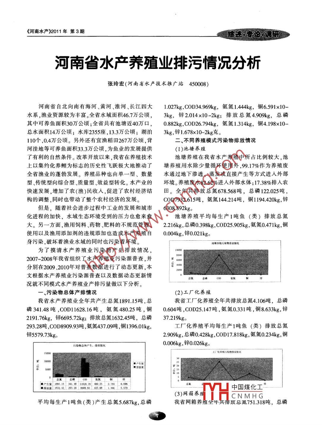 河南省水產(chǎn)養(yǎng)殖業(yè)排污情況分析