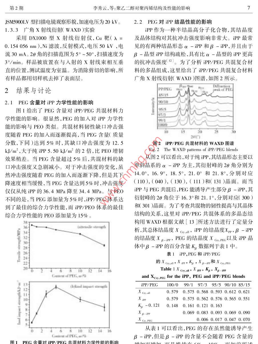 聚乙二醇對聚丙烯結(jié)構(gòu)及性能的影響