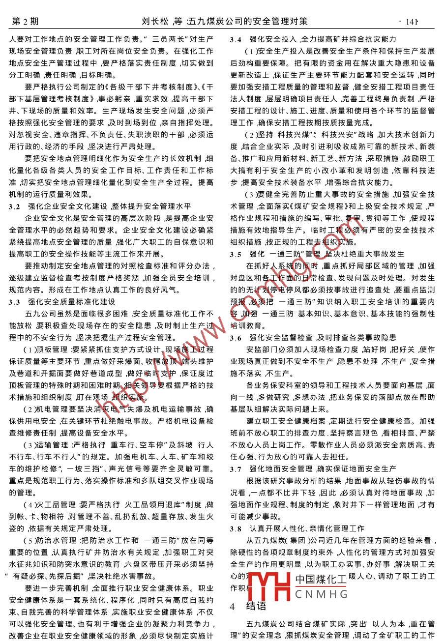 五九煤炭公司的安全管理對(duì)策