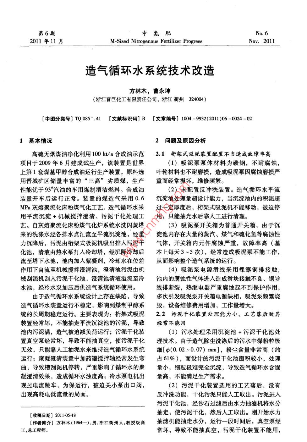 造氣循環(huán)水系統(tǒng)技術(shù)改造