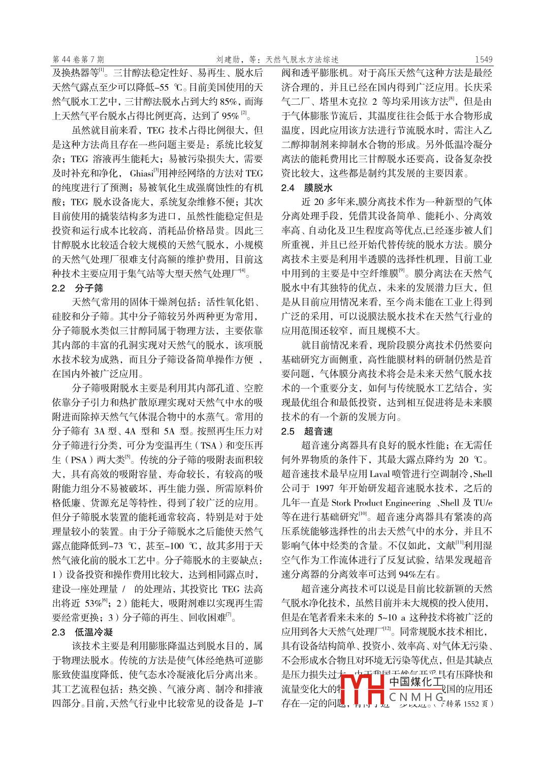 天然氣脫水方法綜述