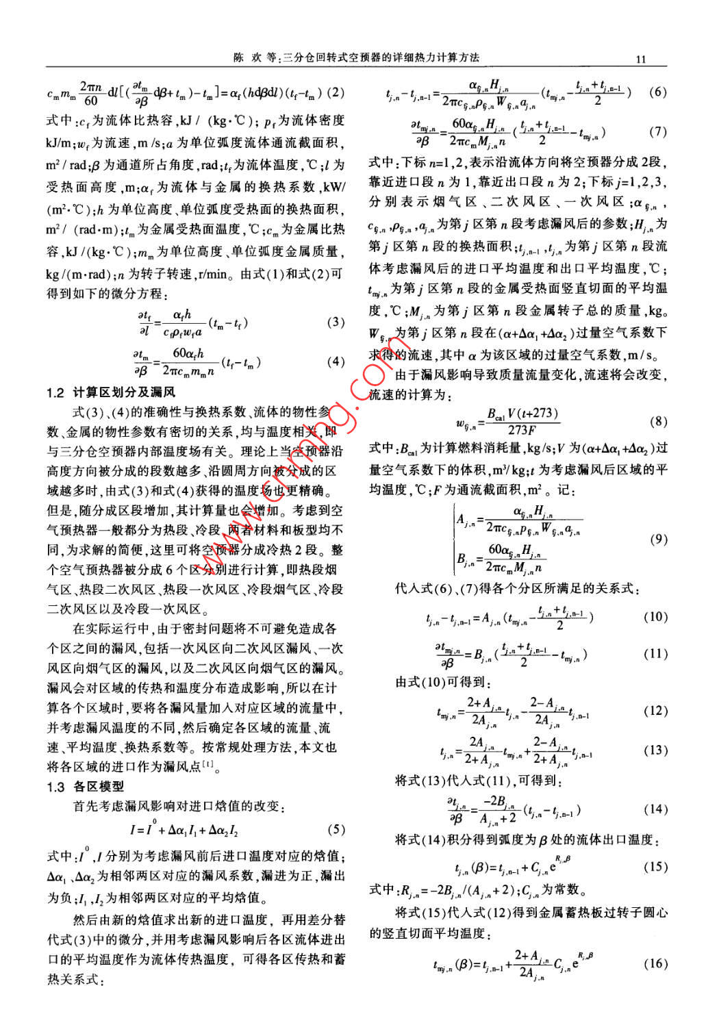 三分倉回轉(zhuǎn)式空預(yù)器的詳細(xì)熱力計(jì)算方法
