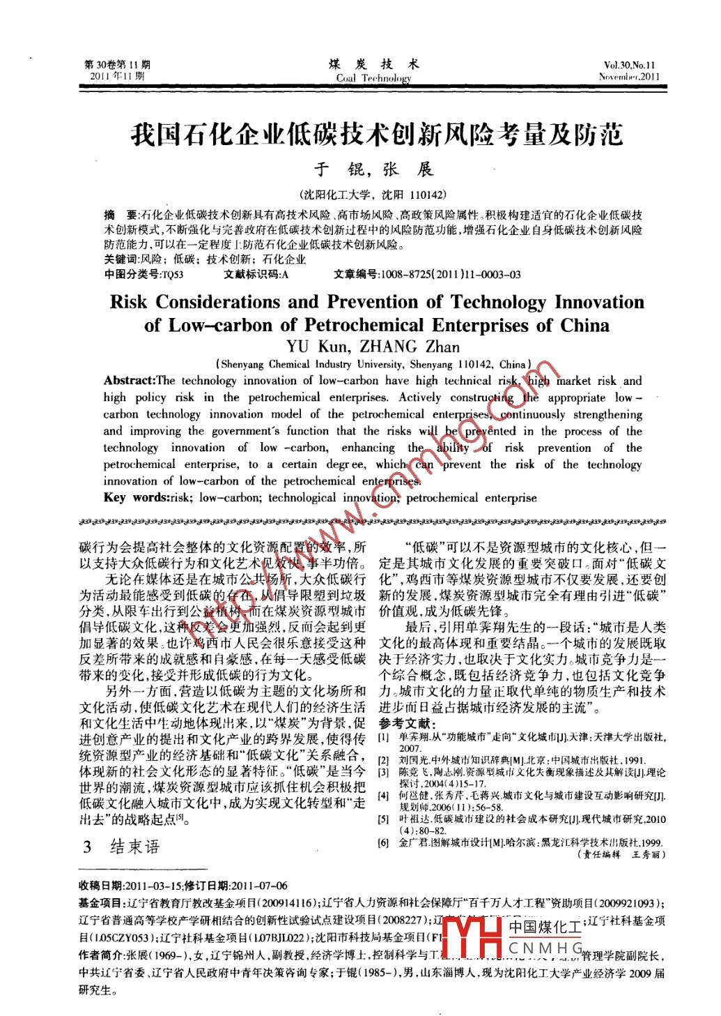 第30卷第11期煤炭技術(shù)Vol.30,No.112011年11期Coal TechnologyNovember,2011559939231“煤炭城市”與“低碳文化”的碰觸董君(東北林業(yè)大學(xué)土木工程學(xué)院,哈爾濱150040)摘要:在煤炭和低碳的矛盾中,通過問題的共軛轉(zhuǎn)化,化矛盾為機(jī)會(huì),化被動(dòng)為主動(dòng),主動(dòng)迎接“低碳”文化的挑戰(zhàn)。同時(shí),把相關(guān)的元素進(jìn)行分解和重構(gòu),嘗試在煤炭資源型城市核心文化等方面提出一些新策略 ,為煤炭資源型城市的文化構(gòu)建提供-個(gè)新的出路。關(guān)鍵詞;煤炭城市;城市文化;低碳中圖分類號(hào):r29文獻(xiàn)標(biāo)識(shí)碼:A文章編號(hào):1008- -8725(20111-0001-03Touch Between Coal City and Low- -carbon CultureDONG Jun(College of Civil Engineering, Northeast Forestry Universily, Harbin 150040, China )A bstract:This contradiction in the coal and low-carbon take the initiative to meet the culturalchallenges on "low carbon" through the transformation of conjugate for the chance of conflict.Meanwhile, we put the related elements to decomposition and reconstruction, so that offer coalcity some new strategy on core culture and provide a new way out for the cultural constructionfor the cities.Key words:coal city; city culture; low -carbon質(zhì)疑,因?yàn)槎贾罒o論是文化還是城市都無時(shí)無刻引言不在變化和發(fā)展。所以要系統(tǒng)認(rèn)識(shí)城市文化首先要求文化和城市的概念要系統(tǒng),同時(shí)得到一一個(gè)結(jié)論:城進(jìn)入21世紀(jì),中國(guó)城市正在發(fā)生著前所未有的市文化是一 個(gè)動(dòng)態(tài)的有一定模糊程度的概念,就像巨變,在一個(gè)發(fā)展階段尚未完成,下一個(gè)發(fā)展階段已城市和文化一樣很難完全精準(zhǔn)的認(rèn)識(shí)。所以,對(duì)城然到來。許許多多與共和國(guó)同舟共濟(jì)的資源型城市市文化與其他元素 進(jìn)行解構(gòu)然后重新“排列組合”很不僅正面臨生存轉(zhuǎn)型的考驗(yàn),還面對(duì)著城市文化的可能會(huì)給我們嶄新的視角和機(jī)會(huì)網(wǎng)。發(fā)展和傳承的壓力,特別是在“低碳城市”的倡導(dǎo)下,1.2 低碳與城市文化需要在重重壓力下為這些透支著精神與資源的城市學(xué)術(shù)界把低碳內(nèi)涵延展為低碳社會(huì)、低碳經(jīng)濟(jì)、尋找新的文化出路"。低碳生產(chǎn)、低碳消費(fèi)、低碳生活、低碳城市、低碳社區(qū)、低碳家庭、低碳旅游、低碳文化、低碳哲學(xué)、低碳基本問題藝術(shù)、低碳生活方式。參考以上的解釋,可以認(rèn)為低1.1 城市與城市文化碳城市文化是指以低碳作為城市發(fā)展的模式及方對(duì)于城市文化的認(rèn)識(shí)和理解有很多,概括起來向,而市民要以低碳為生活理念和行為特征,城市建很難。首先,假定“文化'和“城市”分別是-個(gè)系統(tǒng)概設(shè)及各種活動(dòng)也要以低碳作為準(zhǔn)則。念,城市文化則是包含于“城市”之內(nèi)或與“城市”相“低碳城市文化”的倡導(dǎo),是現(xiàn)階段的一個(gè)大背關(guān)的文化現(xiàn)象,同時(shí)城市文化肯定具有時(shí)間維度和景,并不歸某個(gè)城市所特有。但是,“低碳”的核心需空間維度的屬性。關(guān)于城市及其文化的元素分解不求與某個(gè)特定的城市特殊條件相結(jié)合,有可能就會(huì)可窮盡,元素的分解重構(gòu)過程具有復(fù)雜化、多元化的形成新的事物。雖然,低碳與煤炭在嚴(yán)格學(xué)術(shù)意義上特點(diǎn),有時(shí)會(huì)轉(zhuǎn)化成其他元索范疇,元素之間存在程并不是- -對(duì)對(duì)稱概念,但煤炭資源型城市首先在主度不同的關(guān)聯(lián)作用。導(dǎo)產(chǎn)業(yè)上似乎就與“低碳”概念有著某種戲劇性的沖在文化集合與城市集合的交集中歸納二者元素突性,以雞西市為例,探討- - 下如何在這種戲劇性的的排列組合將是龐大無比的,所以很自然的傾向用沖突 中找到解決問題的突破口?!俺鞘薪ㄖ?、園林、公共文化娛樂設(shè)施、社會(huì)心理、價(jià)1.3 雞西 市城市文化的狀況值觀念、道德、藝術(shù)、宗教、法律習(xí)俗以及城市居民雞西市作為煤炭資源型城市地處黑龍江省偏的生活方式”等概念來描述城市文化的內(nèi)容。這樣的遠(yuǎn)、條件艱苦的地區(qū)從前提倡“埋頭苦干、無私奉描述便于接受理解,似乎有可能得到一個(gè)精準(zhǔn)的關(guān)獻(xiàn)" 的精神中國(guó)煤化工:城市生存的需于城市文化的系統(tǒng)概念。但這樣-一個(gè)想法很容易被要。但是時(shí)1|YHCNMH G的生產(chǎn)水平和收稿日期:2011-02- -04;修訂日期:2011-07- -27作者簡(jiǎn)介:董君( 1972- ),男哈爾濱人,東北林業(yè)大學(xué)土木工程學(xué)院副教授,現(xiàn)為哈爾濱工業(yè)大學(xué)建筑學(xué)院博士在讀。.第30卷第11期煤炭技術(shù)Vol.30.No.112011年11期Coal TerhnologNove-mlr,201 1我國(guó)石化企業(yè)低碳技術(shù)創(chuàng)新風(fēng)險(xiǎn)考量及防范于錕,張展(沈陽化工大學(xué),沈陽110142)摘要:石化企業(yè)低碳技術(shù)創(chuàng)新具有高技術(shù)風(fēng)險(xiǎn).高市場(chǎng)風(fēng)險(xiǎn).高政策風(fēng)險(xiǎn)屬性。積極構(gòu)建適宜的石化企業(yè)低碳技術(shù)創(chuàng)新模式,不斷強(qiáng)化與完善政府在低碳技術(shù)創(chuàng)新過程中的風(fēng)險(xiǎn)防范功能,增強(qiáng)石化企業(yè)自身低碳技術(shù)創(chuàng)新