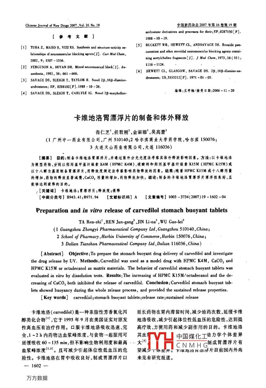 - 期刊名字:中國新藥雜志