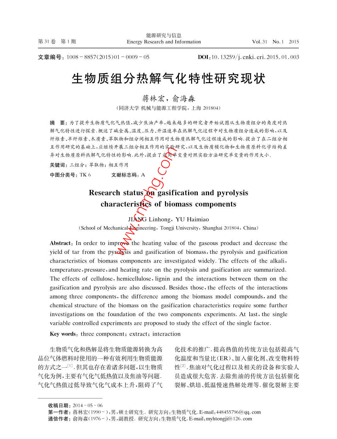 - 期刊名字:能源研究與信息