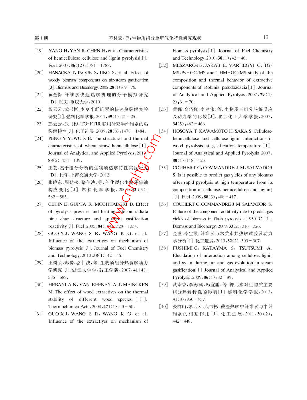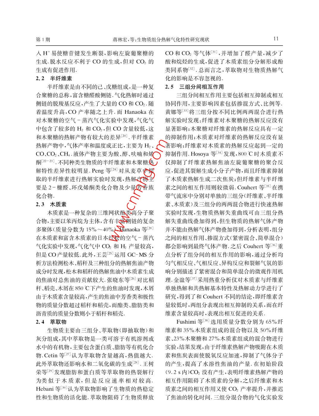 生物質(zhì)組分熱解氣化特性研究現(xiàn)狀
