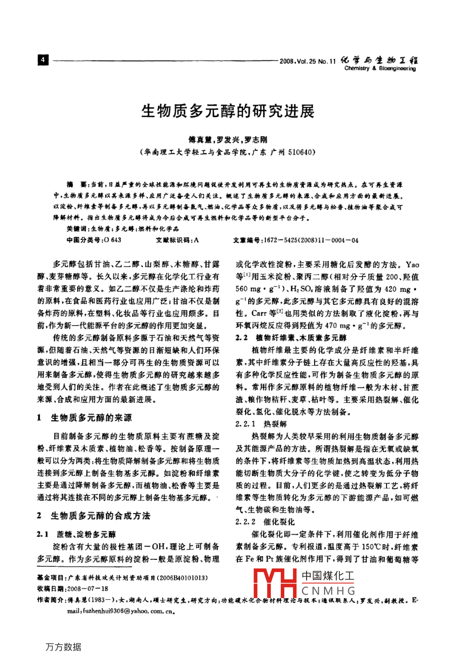 - 期刊名字:化學(xué)與生物工程