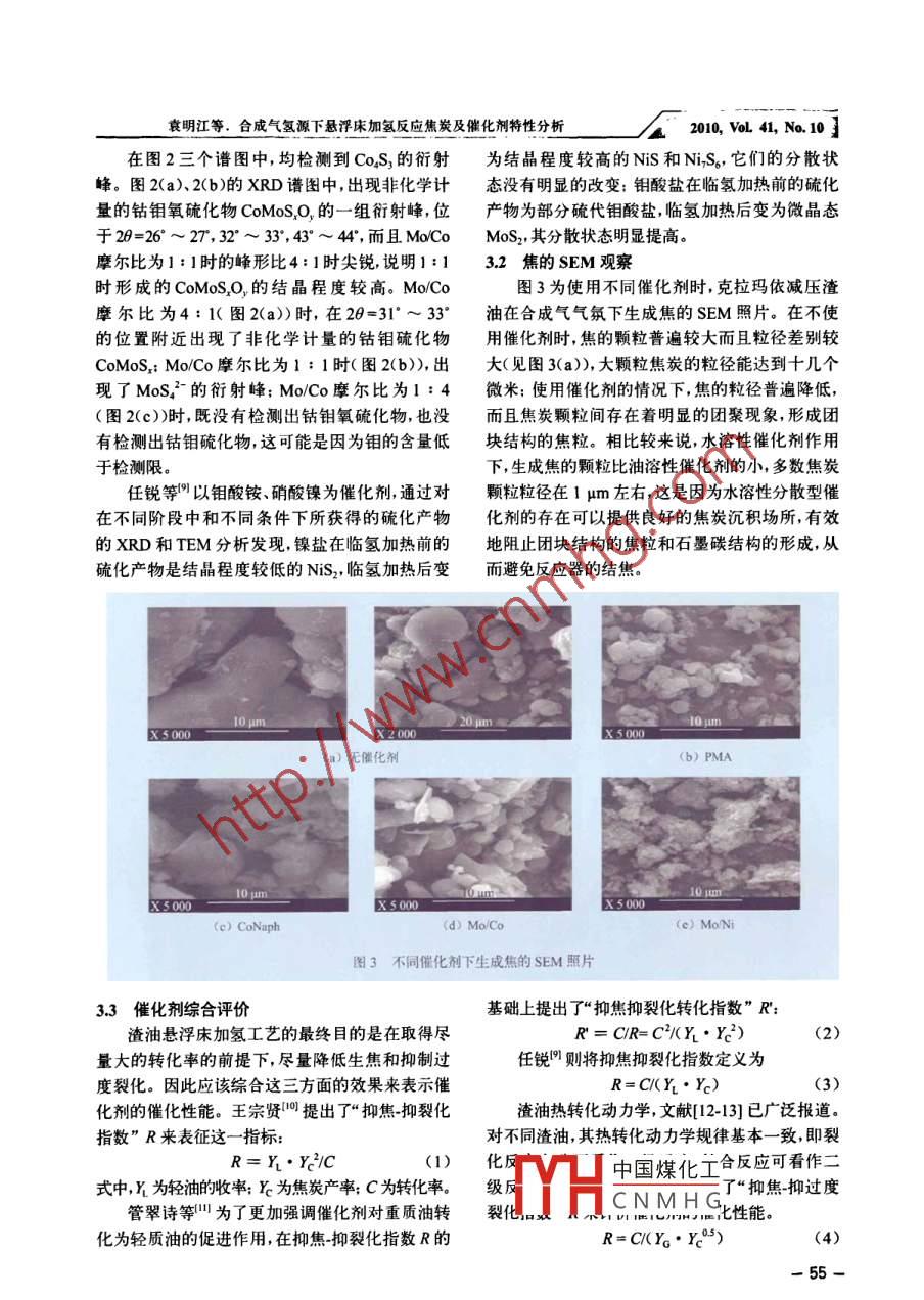 合成氣氫源下懸浮床加氫反應(yīng)焦炭及催化劑特性分析