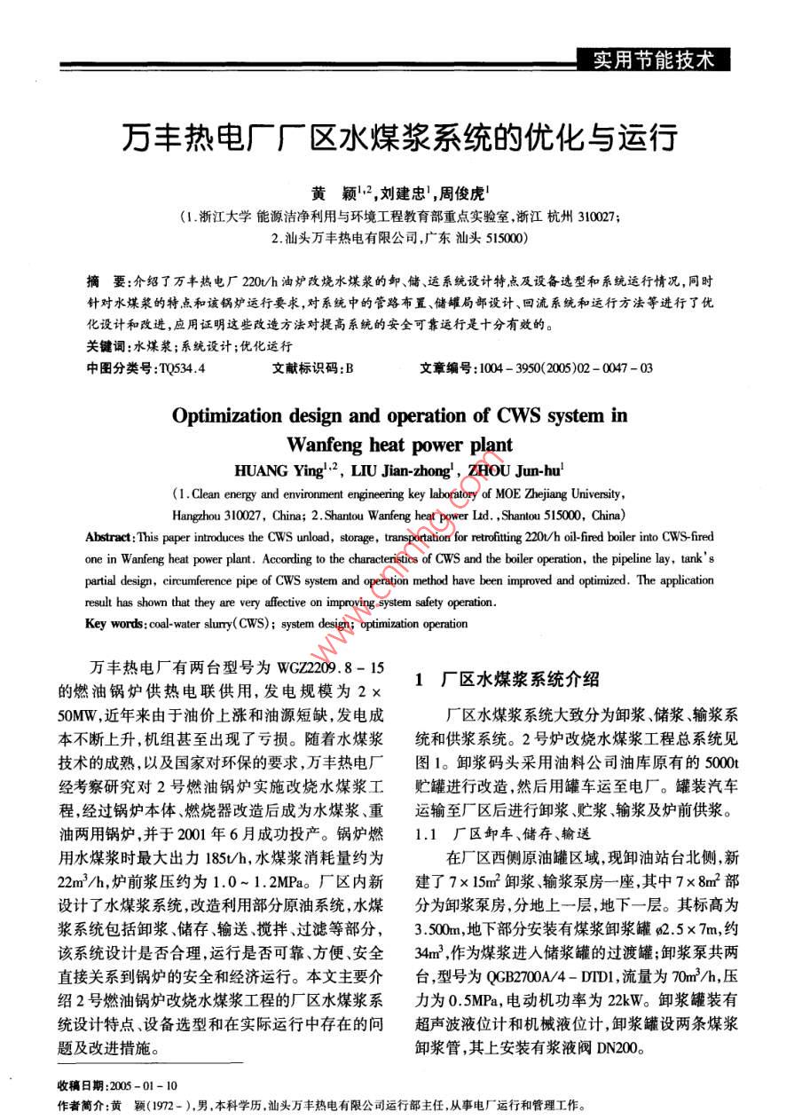 - 作者單位:浙江大學,汕頭萬豐熱電有限公司
