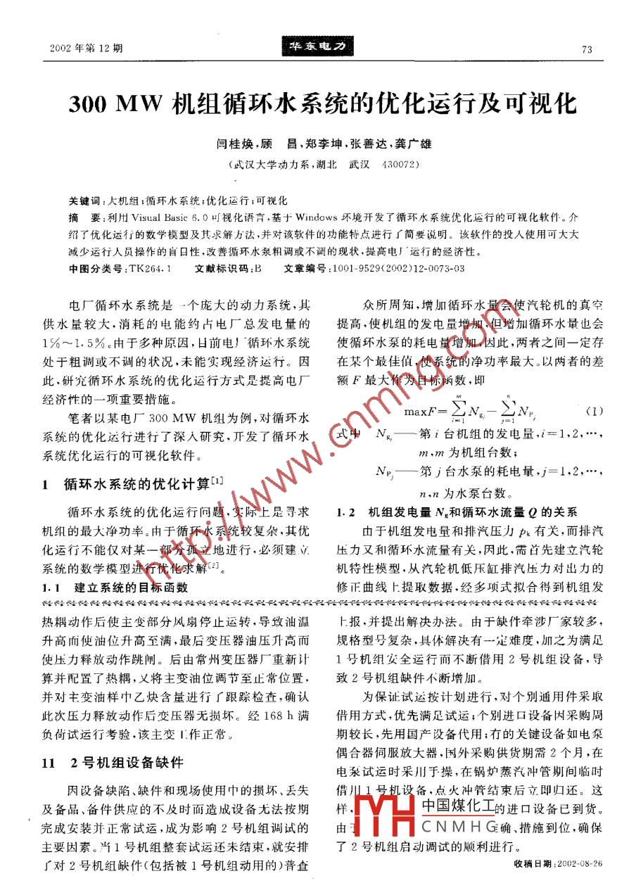300 MW機組循環(huán)水系統(tǒng)的優(yōu)化運行及可視化