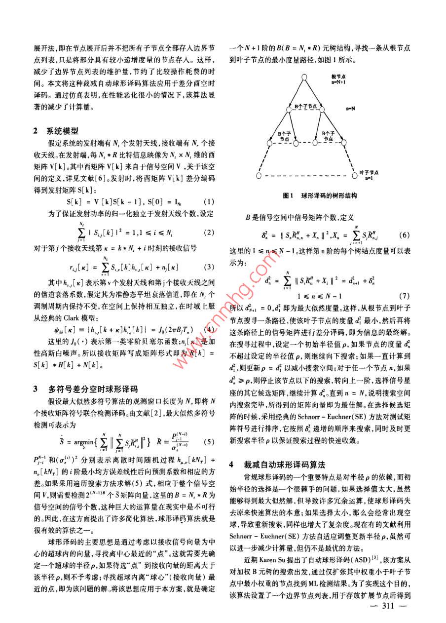 基于裁減自動球形算法的多符號差分空時譯碼