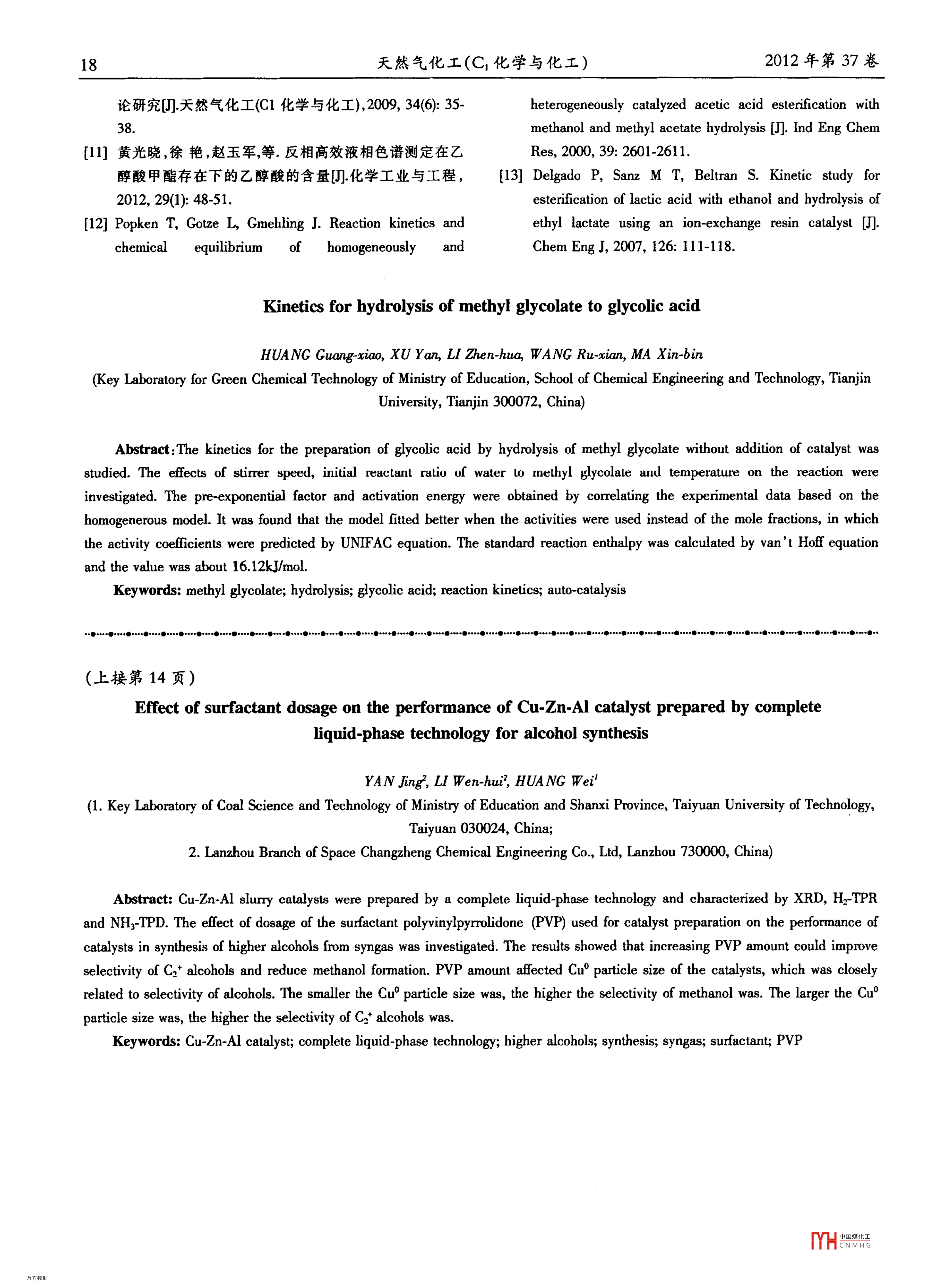 - 期刊名字:天然氣化工