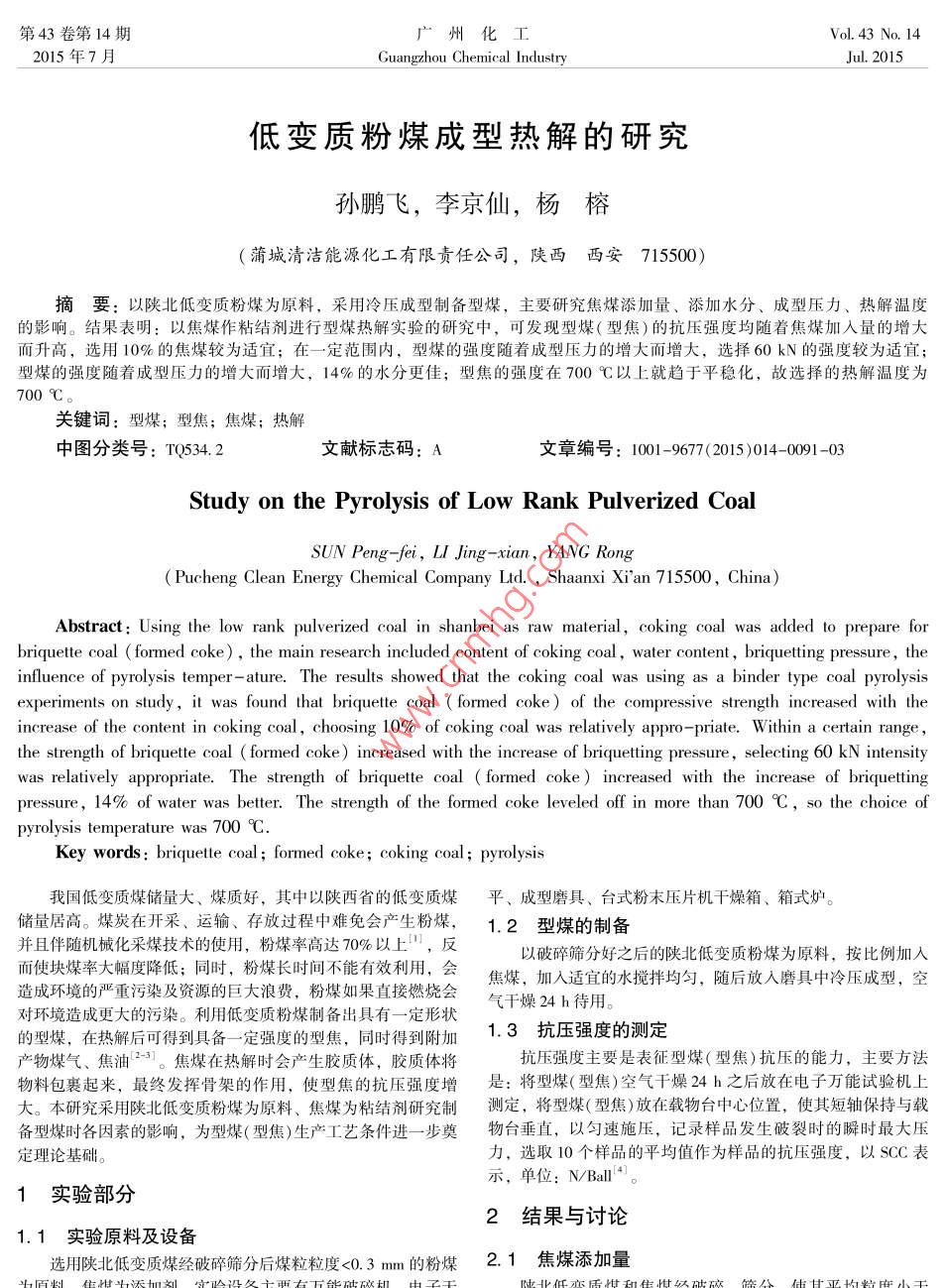 低變質(zhì)粉煤成型熱解的研究