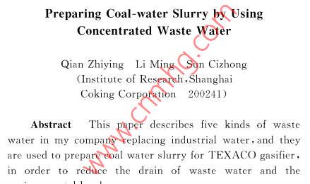 高濃度廢水配制水煤漿
