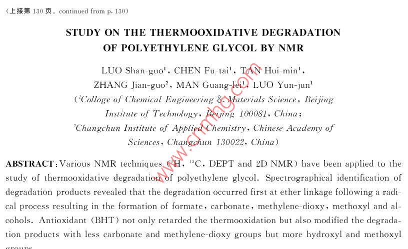 NMR研究聚乙二醇的熱氧降解