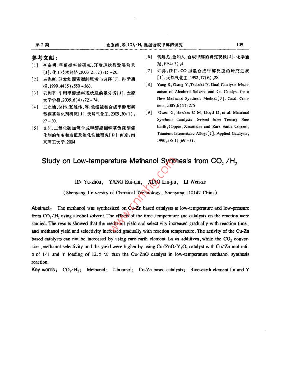 CO2/H2低溫合成甲醇的研究