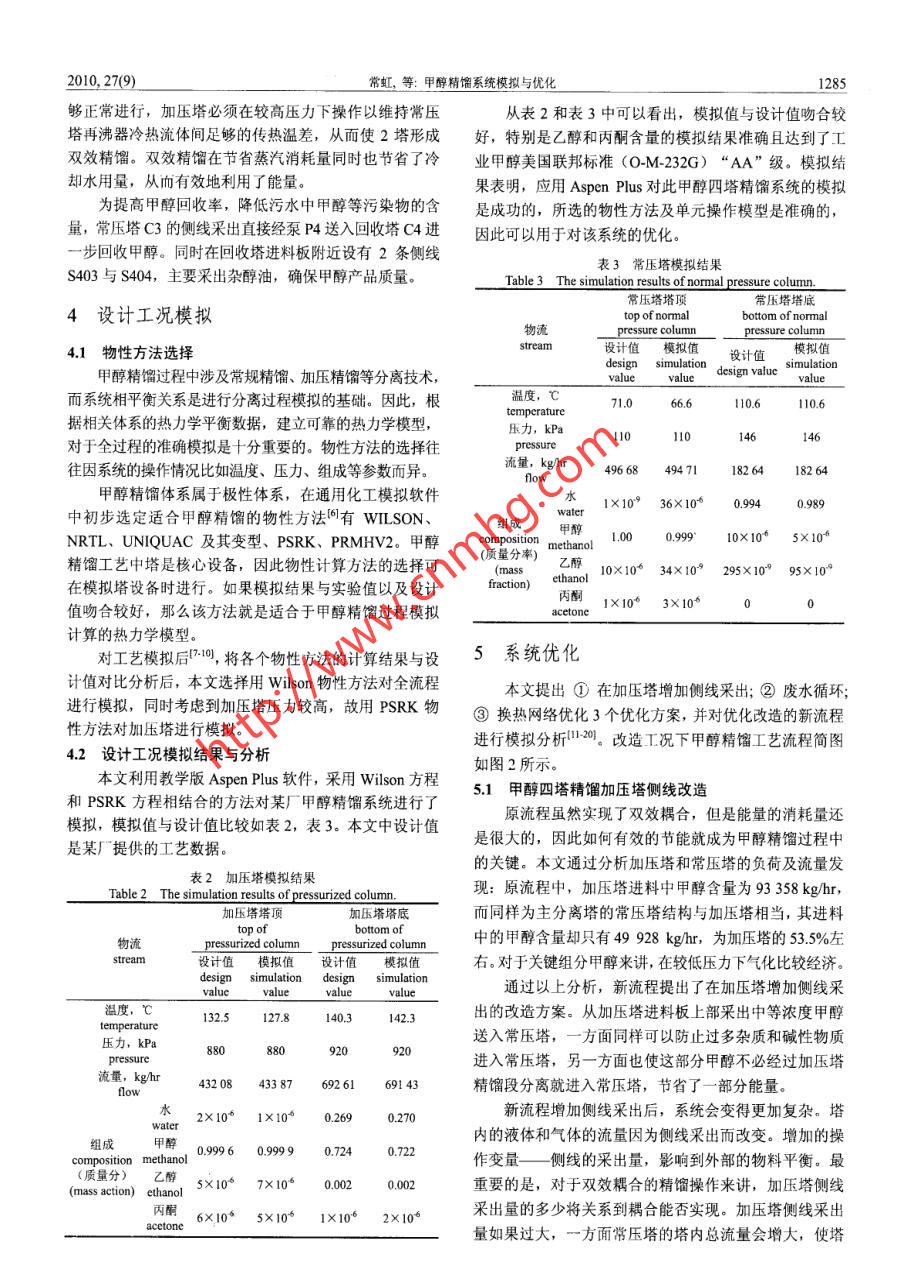 甲醇精餾系統(tǒng)模擬與優(yōu)化