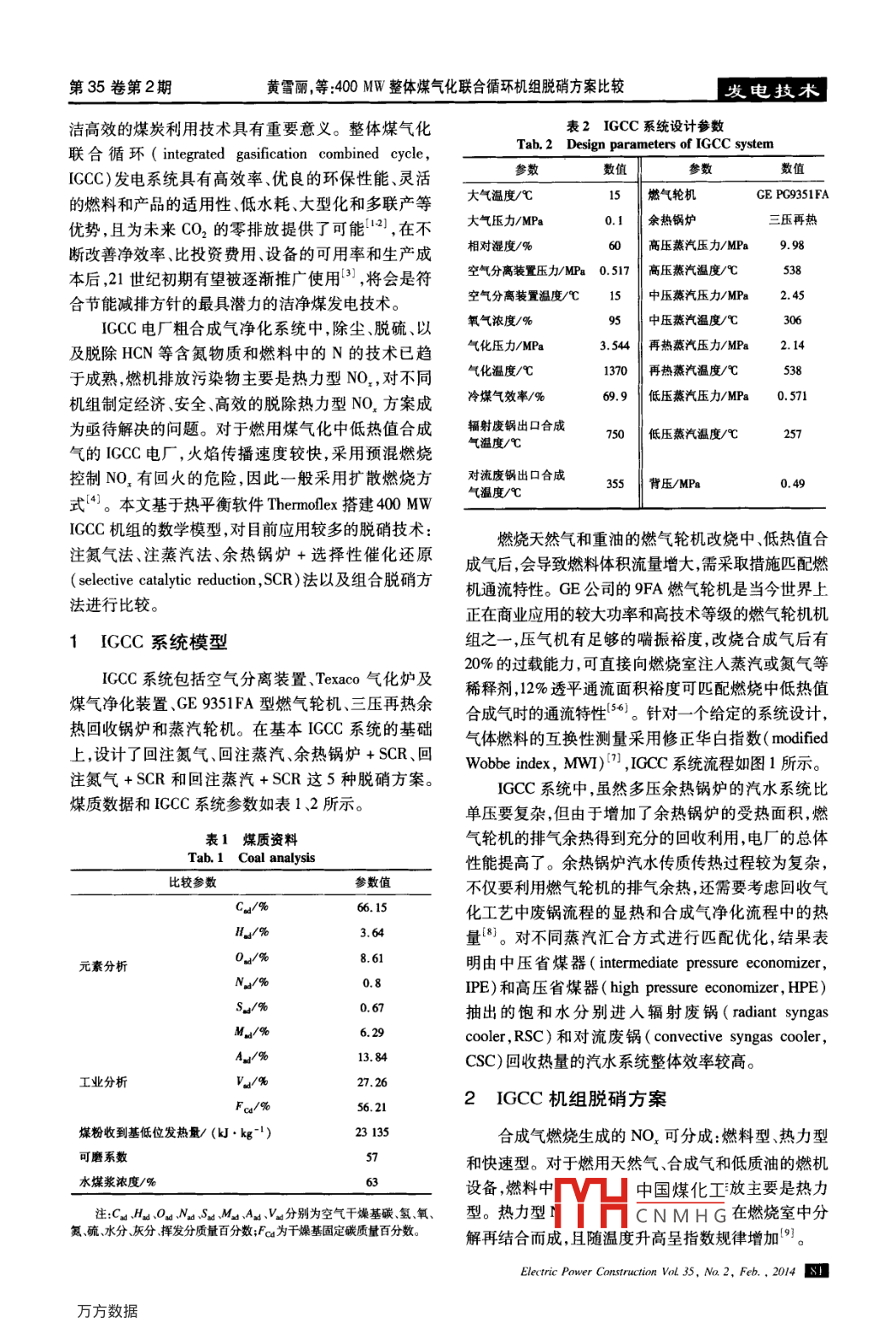 400 MW整體煤氣化聯(lián)合循環(huán)機(jī)組脫硝方案比較