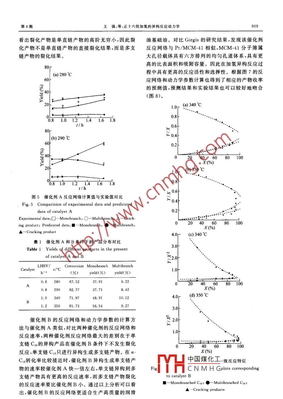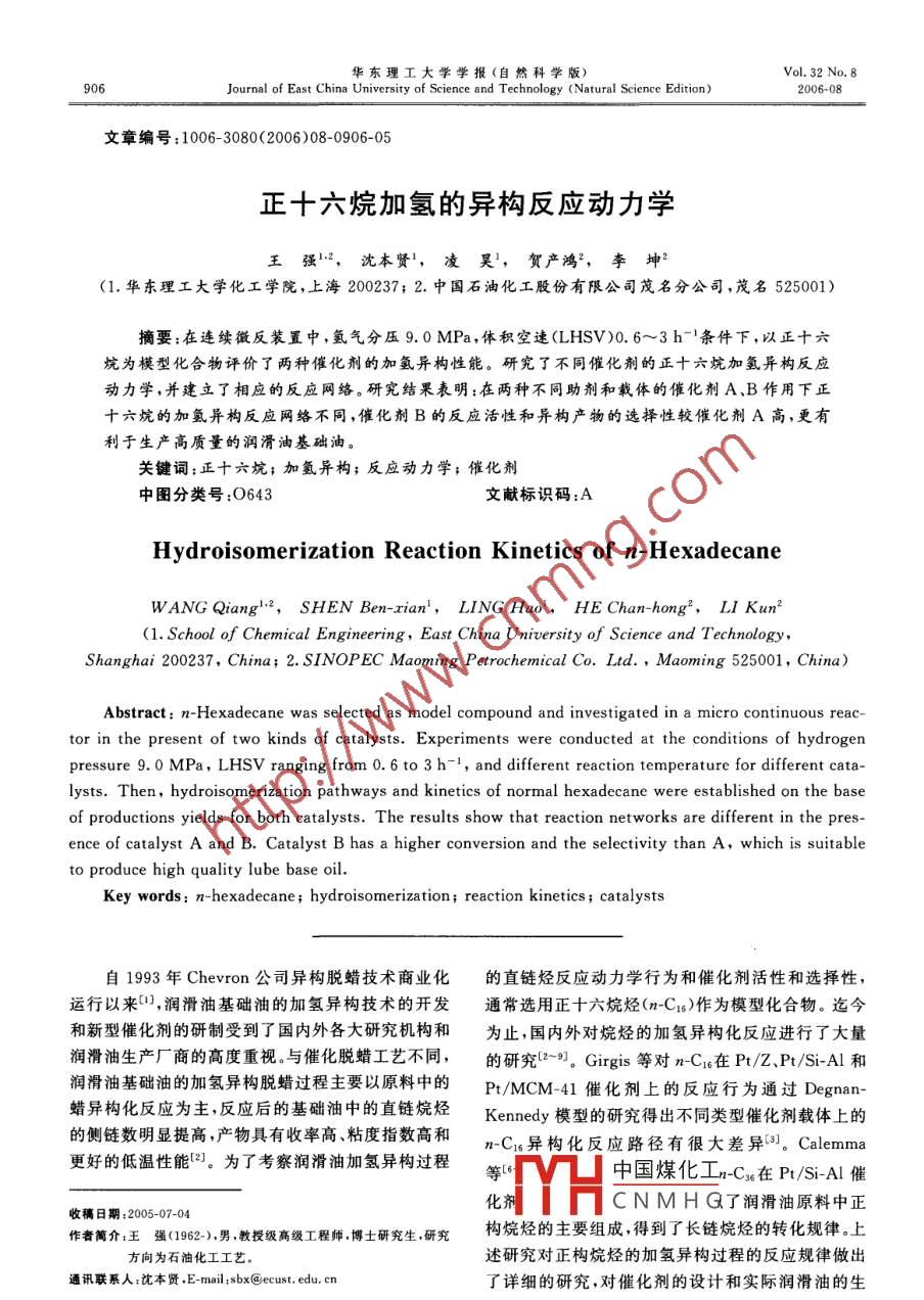 正十六烷加氫的異構(gòu)反應(yīng)動(dòng)力學(xué)