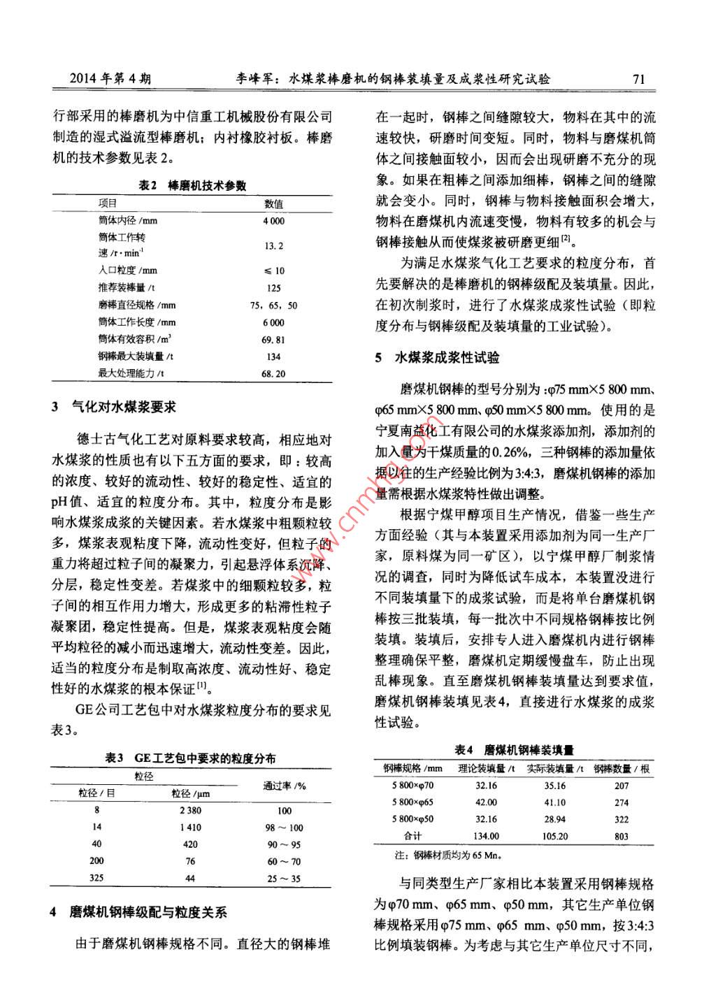 水煤漿棒磨機(jī)的鋼棒裝填量及成漿性研究試驗(yàn)
