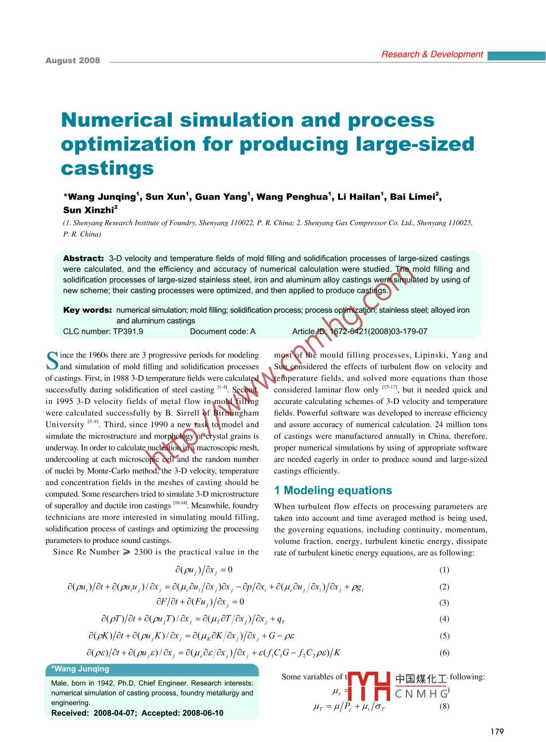 - 作者單位:Shenyang Research Institute of Foundry,Shenyang Gas Compressor Co. Ltd.