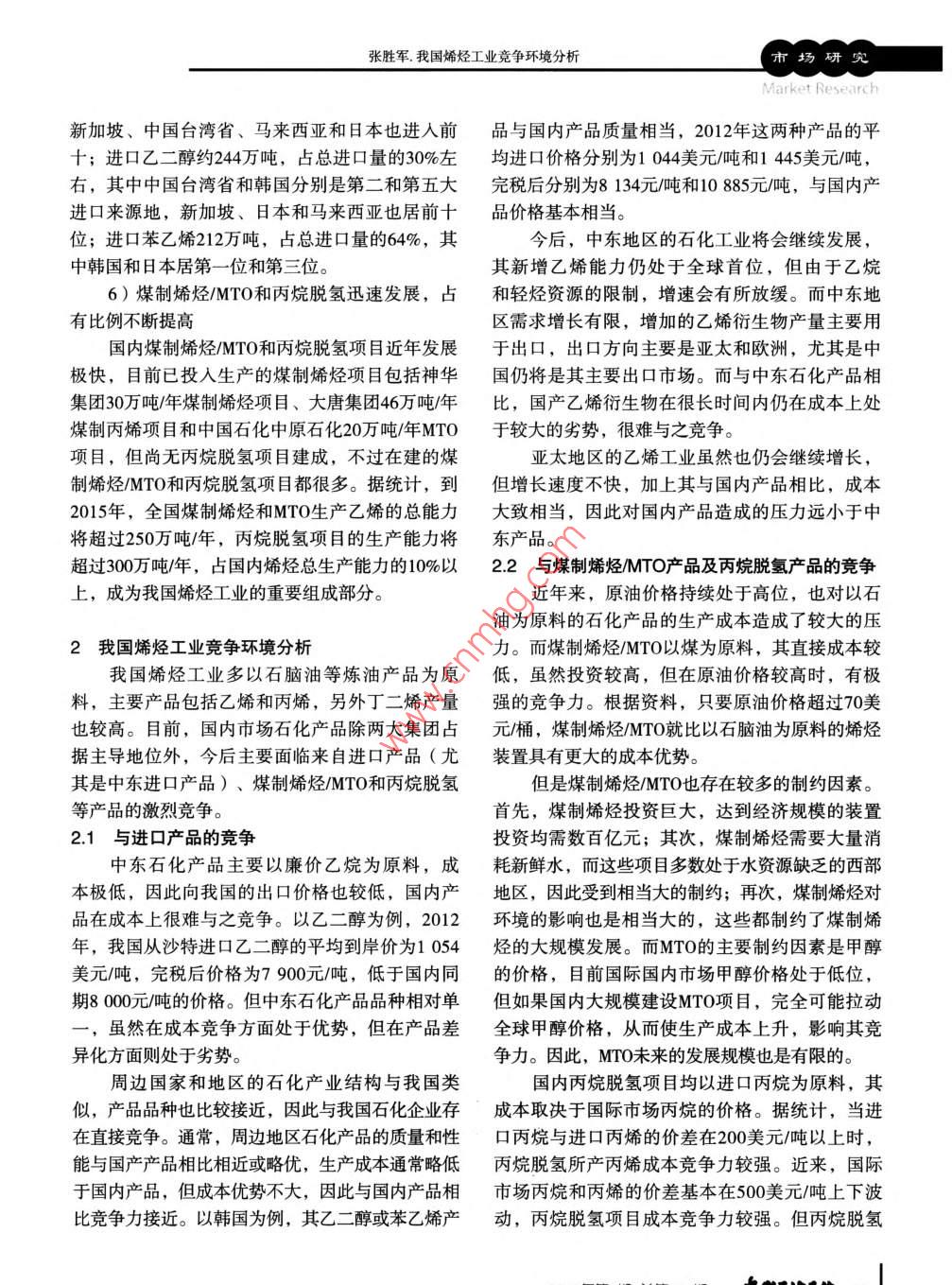 我國(guó)烯烴工業(yè)競(jìng)爭(zhēng)環(huán)境分析