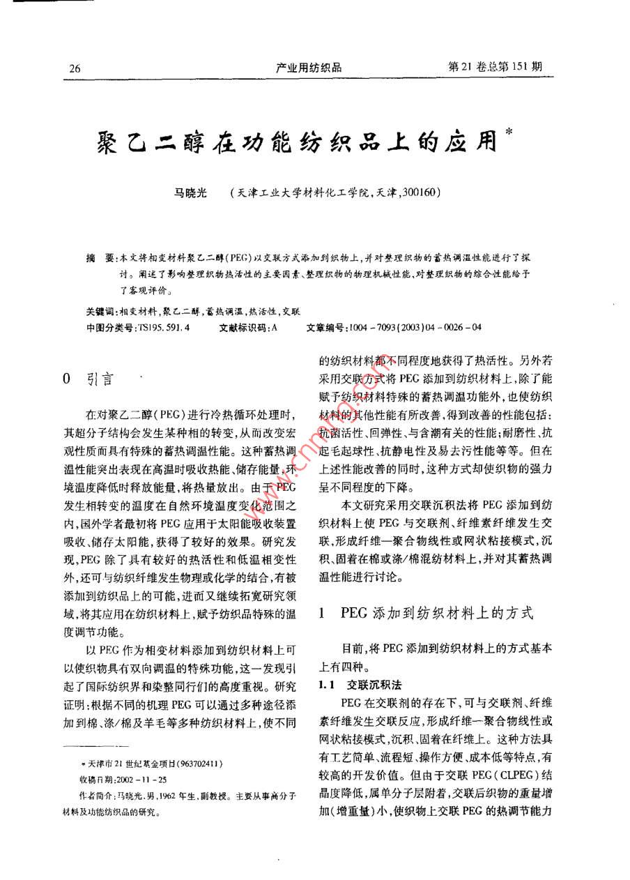 聚乙二醇在功能紡織品上的應(yīng)用