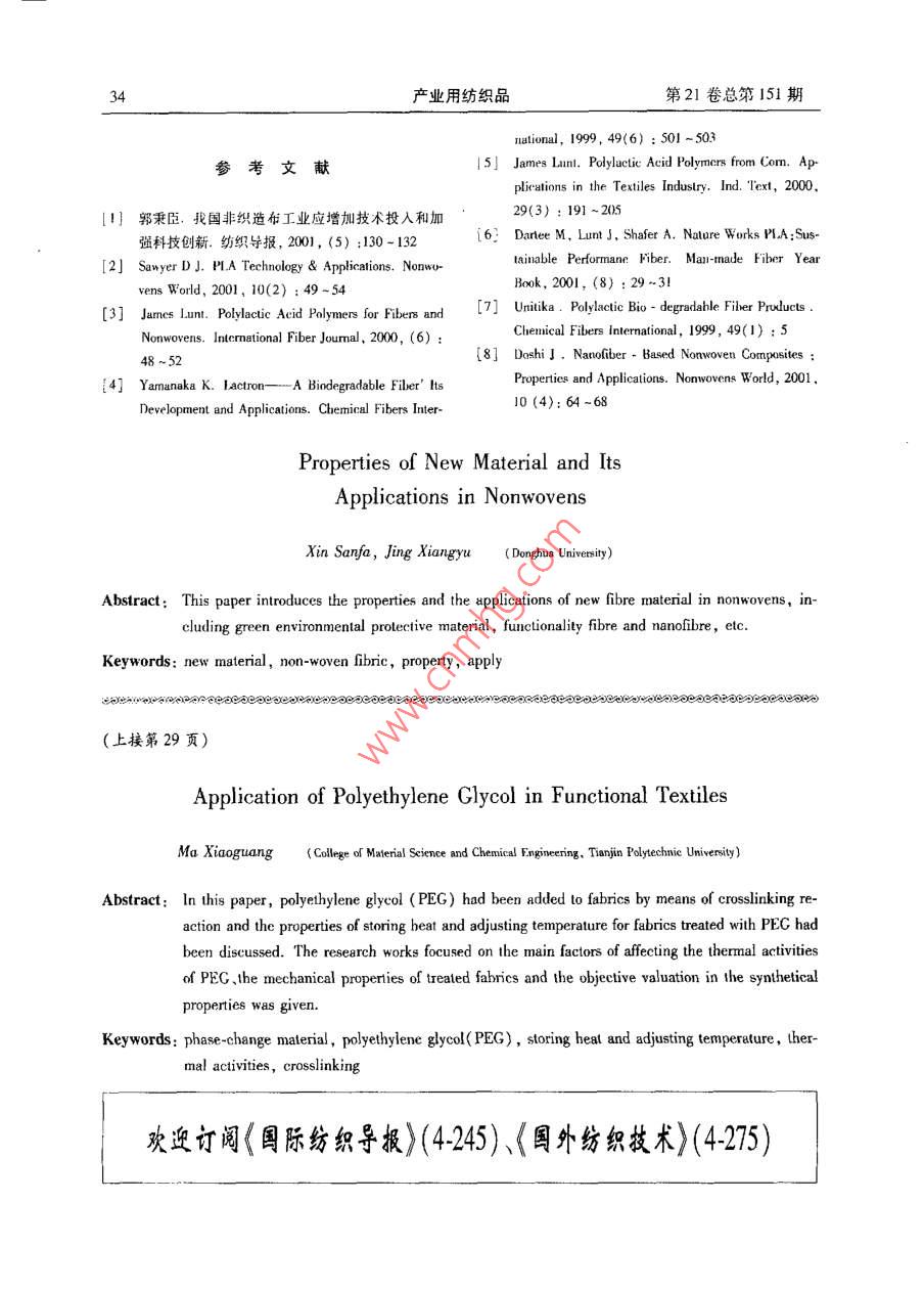 - 期刊名字:產(chǎn)業(yè)用紡織品