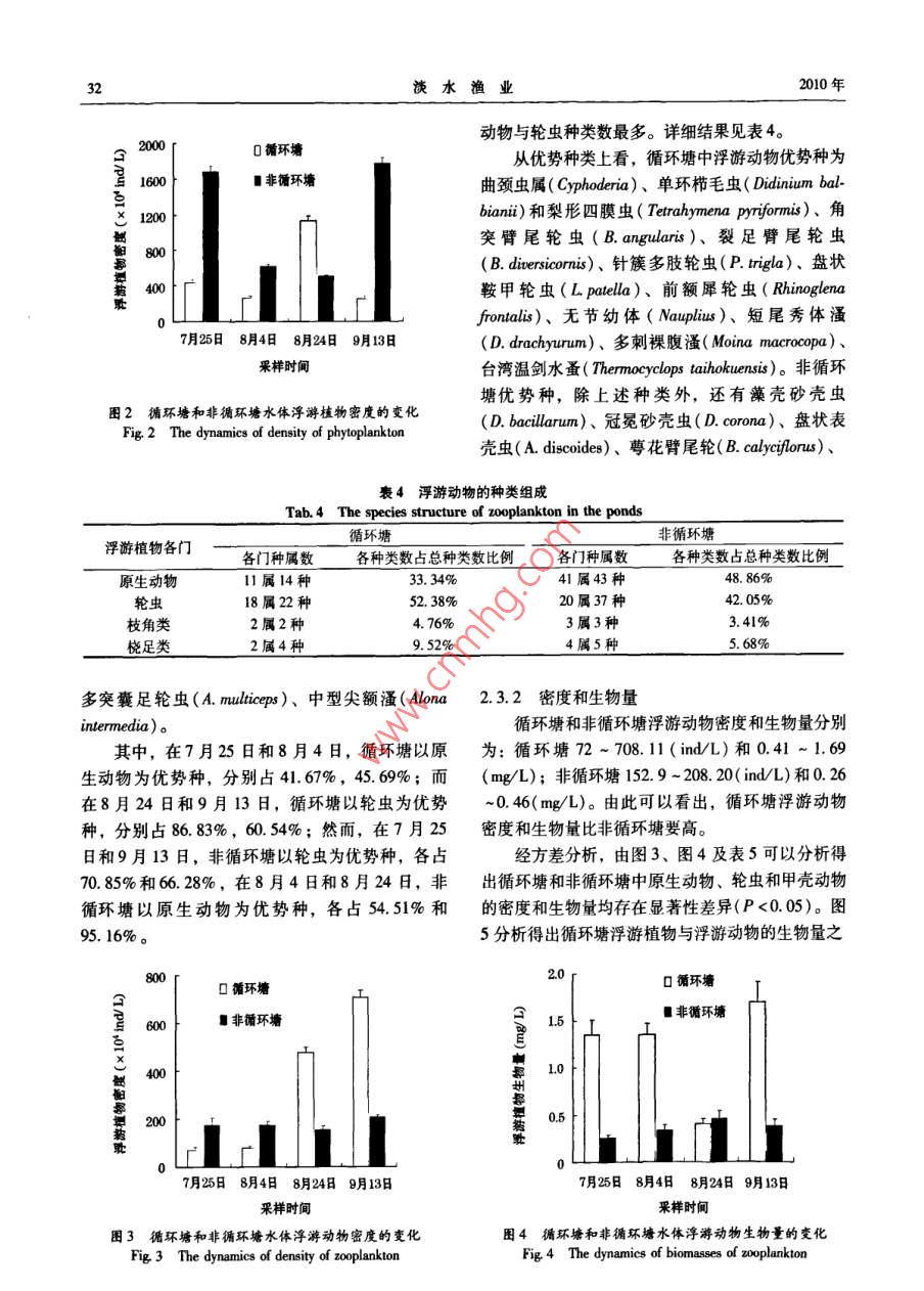 循環(huán)水池塘與非循環(huán)水池塘中浮游生物的群落結(jié)構(gòu)及其動(dòng)態(tài)研究