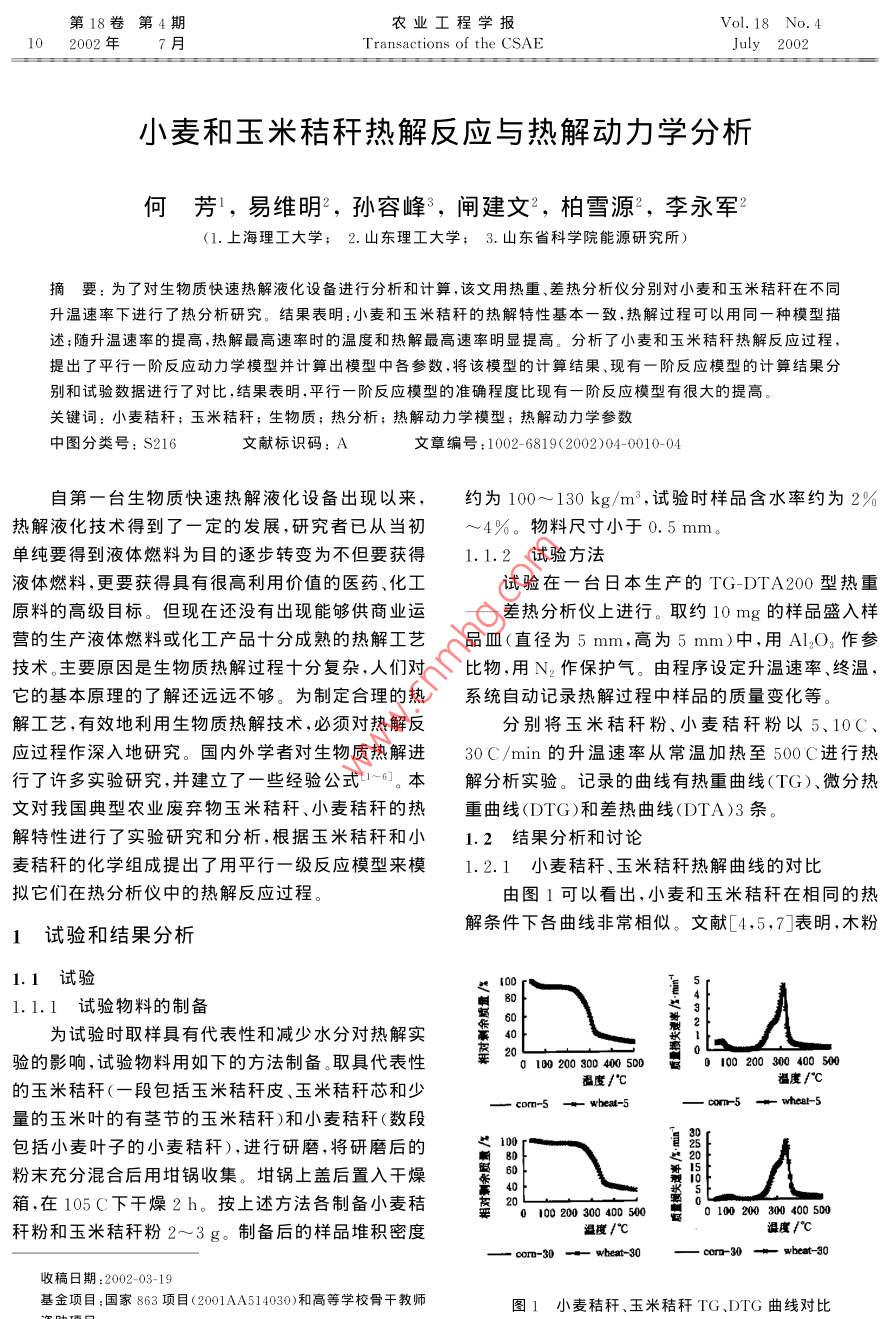 小麥和玉米秸稈熱解反應(yīng)與熱解動(dòng)力學(xué)分析