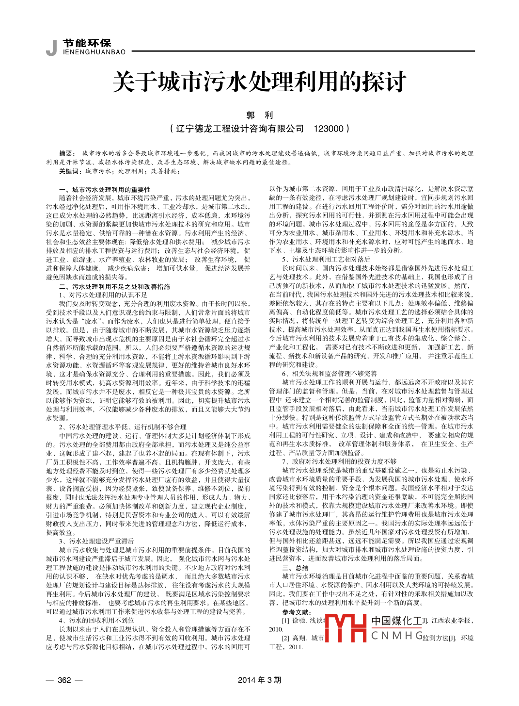 關(guān)于城市污水處理利用的探討