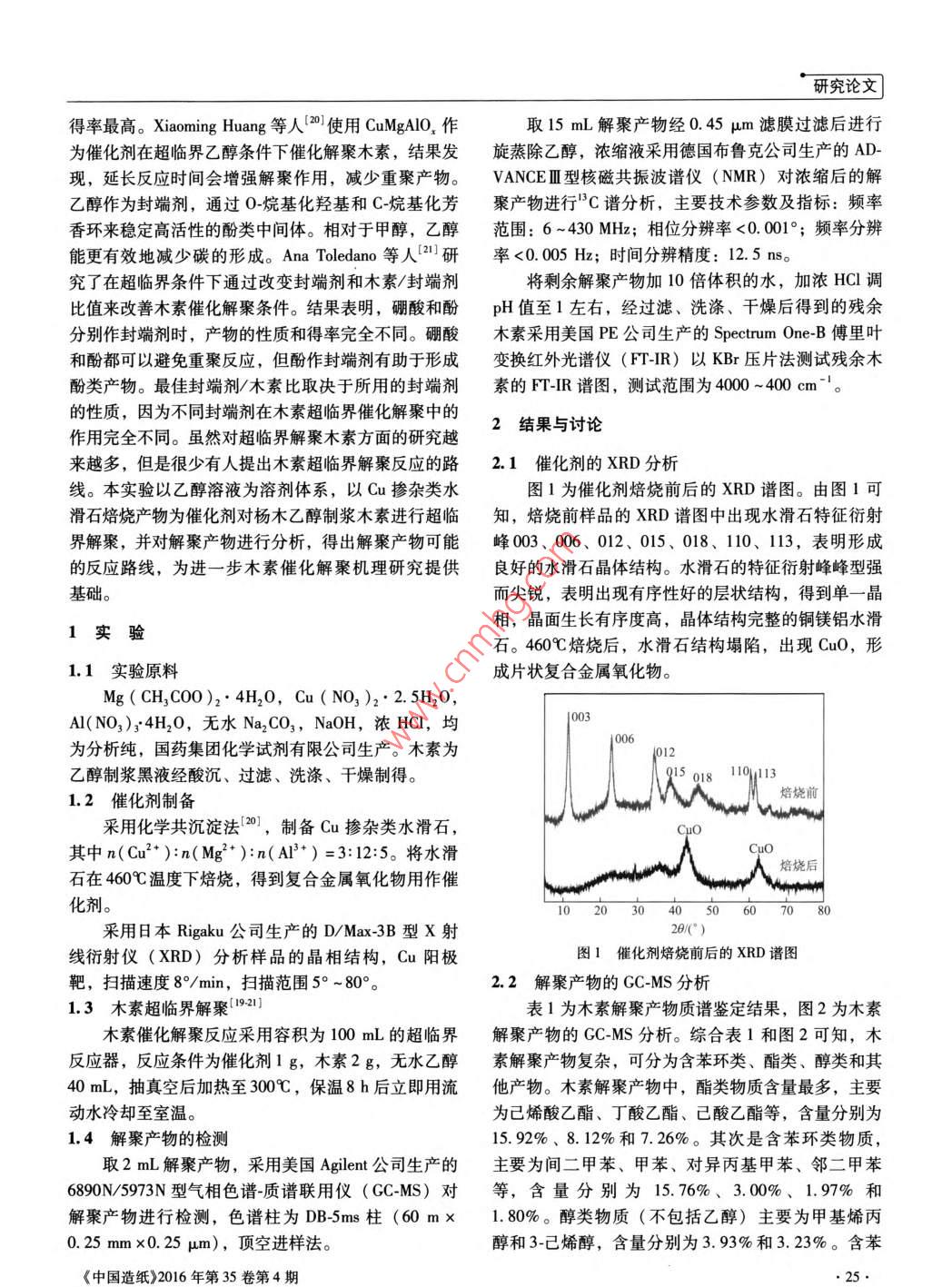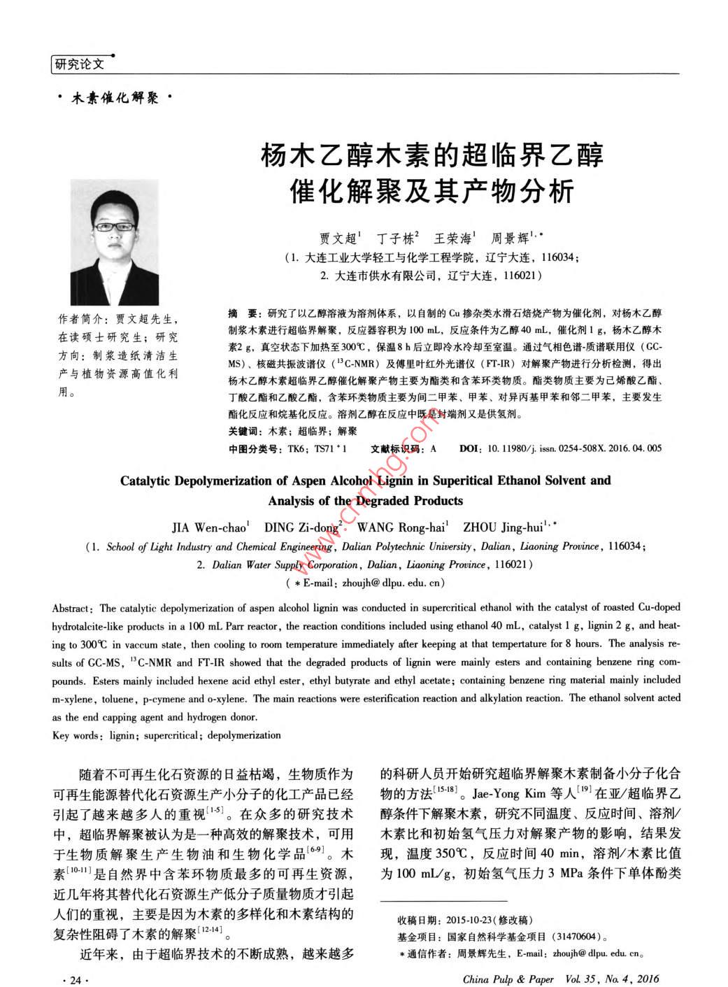 楊木乙醇木素的超臨界乙醇催化解聚及其產(chǎn)物分析