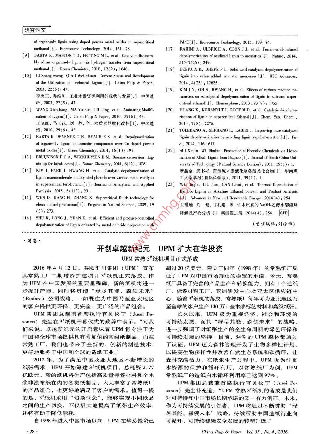 - 期刊名字:中國造紙