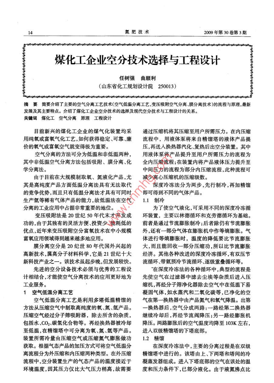 煤化工企業(yè)空分技術(shù)選擇與工程設(shè)計