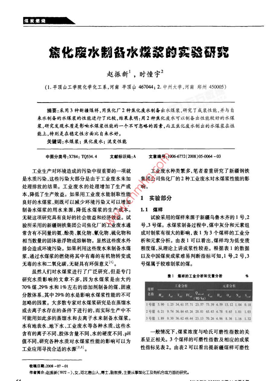 焦化廢水制備水煤漿的實(shí)驗(yàn)研究
